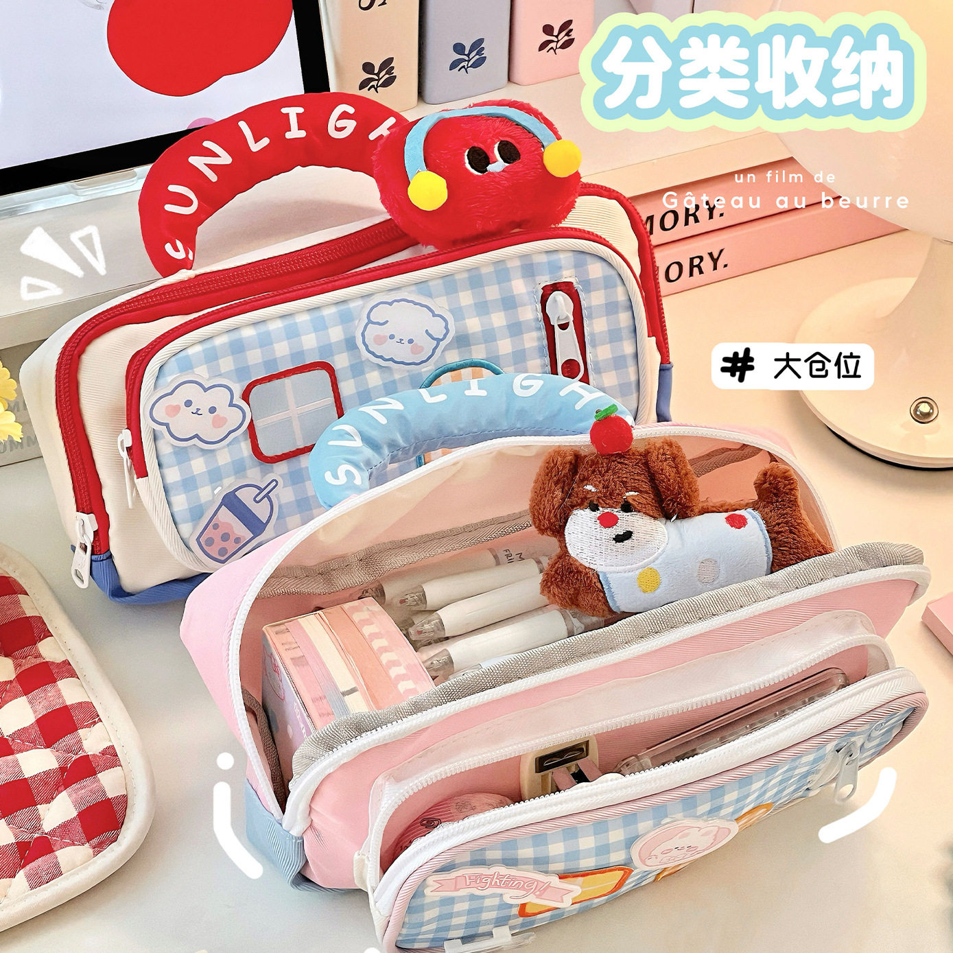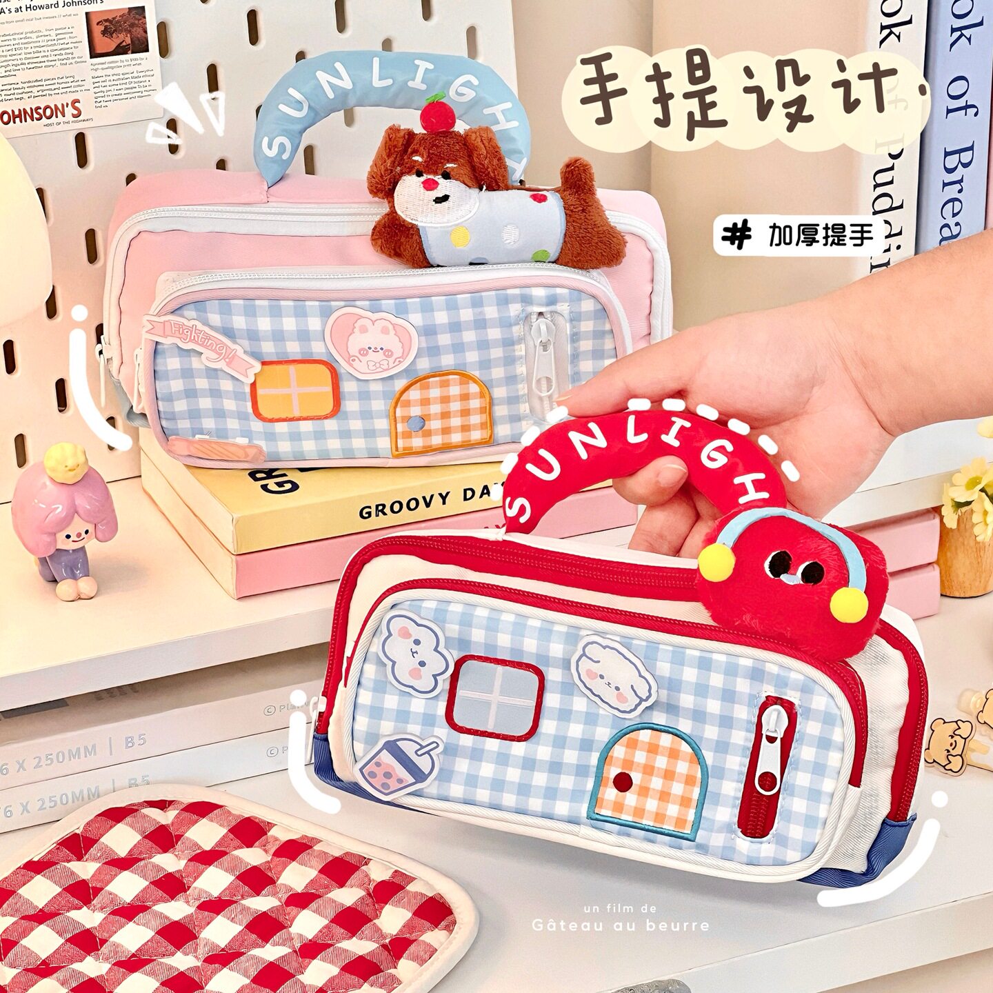 2026新款女生高颜值笔袋多巴胺小房子笔盒小众可爱文具铅笔盒初中生痛包双层大容量粉色收纳蓝色书包