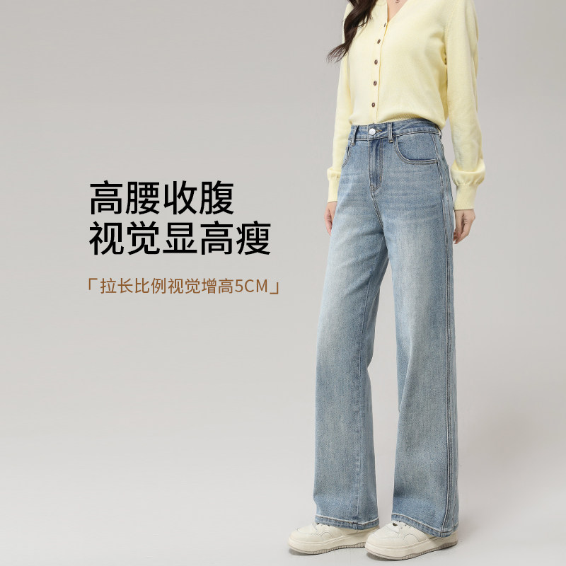 311线报网描述:阔腿牛仔裤 直筒牛仔裤女 浅色牛仔裤 爆款