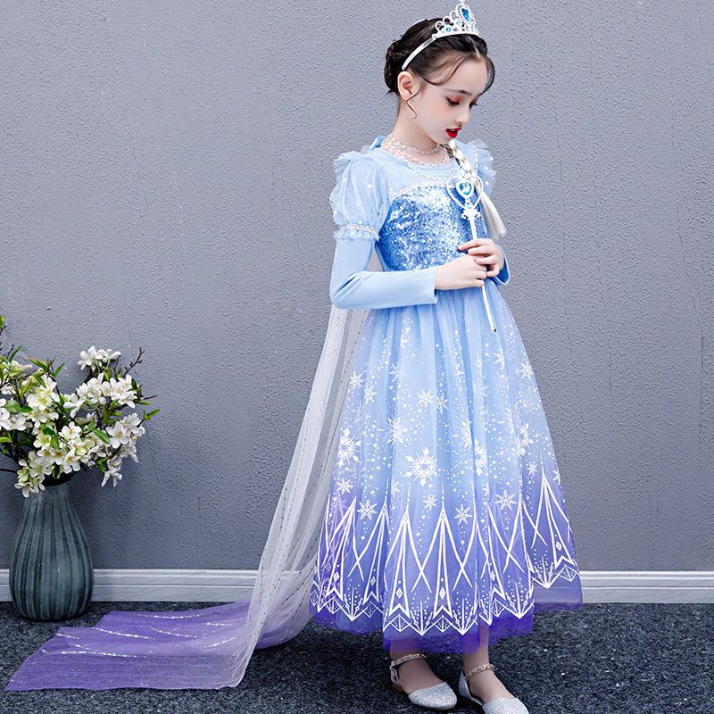女童艾莎公主裙春夏长袖冰雪奇缘艾沙连衣裙春秋小童elsa爱莎礼服