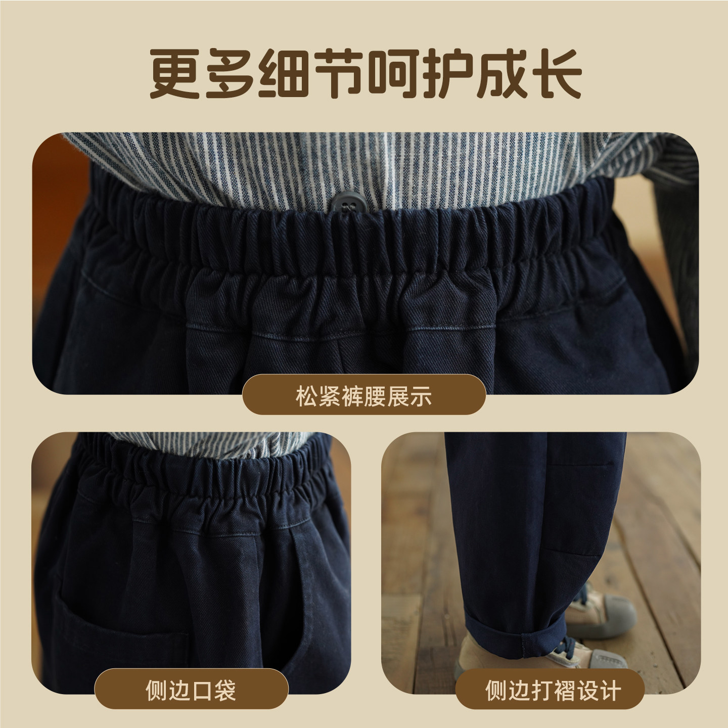 砚台家童装女童裤子薄款复古纯棉休闲裤春装新款儿童女宝哈伦长裤
