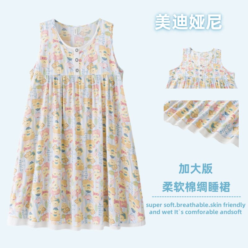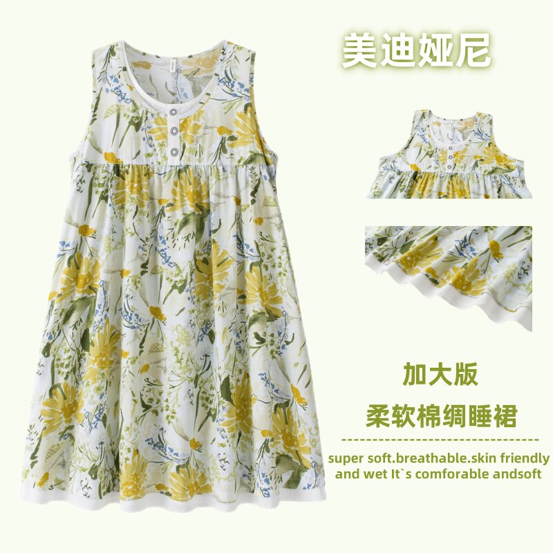 胖mm宽松大码薄款人造棉绸无袖背心睡裙女夏季凉快孕妇家居连衣裙