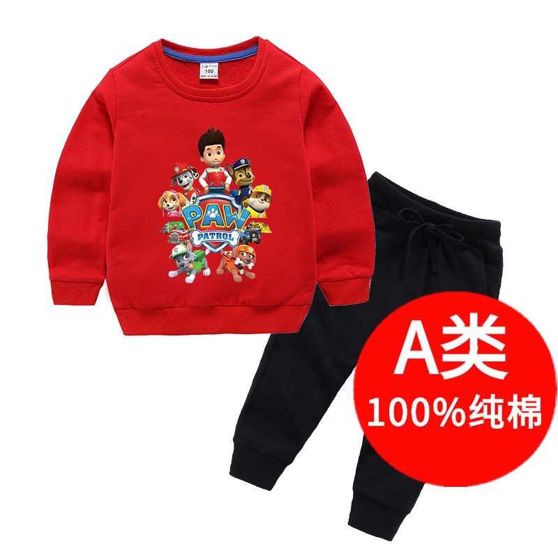 汪汪队衣服男童春秋薄款纯棉卫衣儿童套装春装3岁宝宝5长袖两件套
