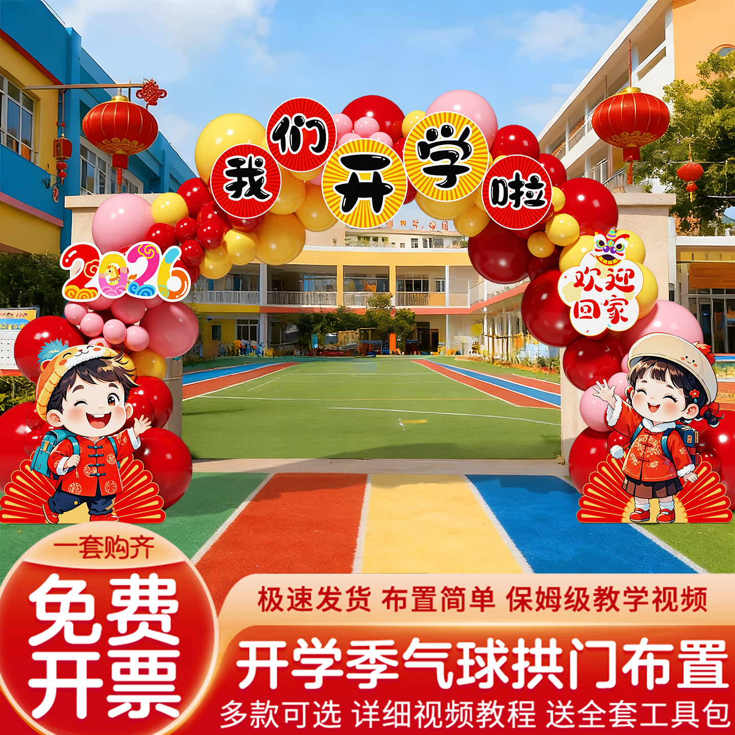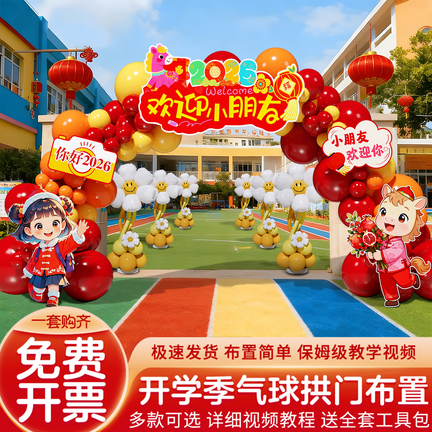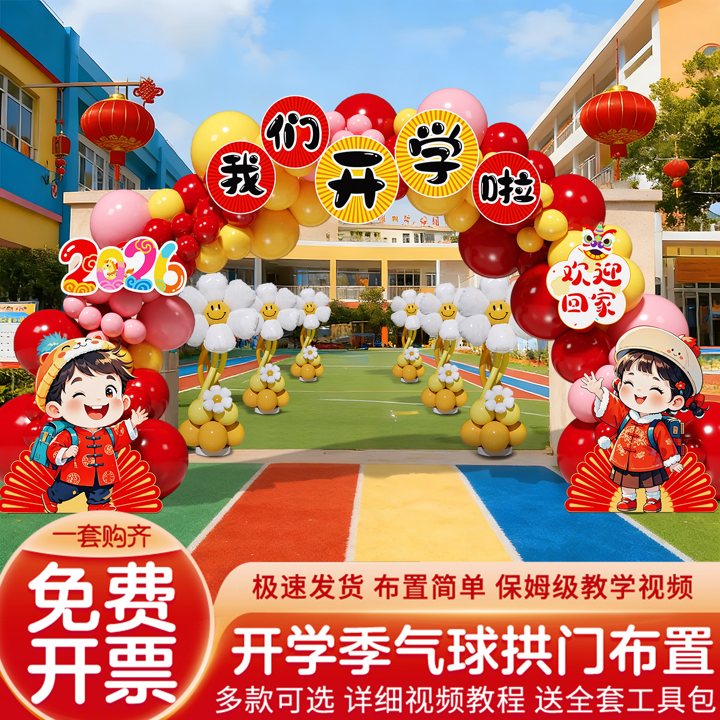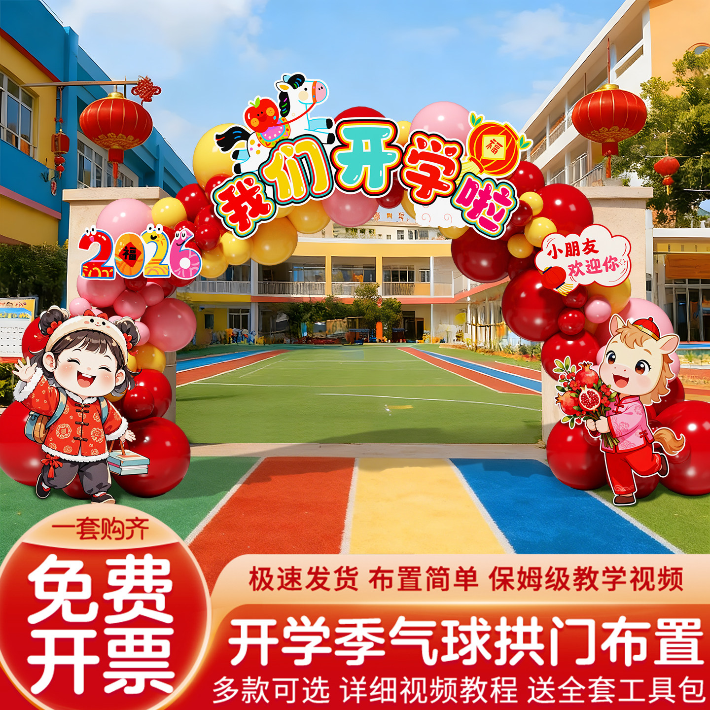 61六一儿童节开学气球拱门场景布置装饰幼儿园迎新典礼氛围感道具