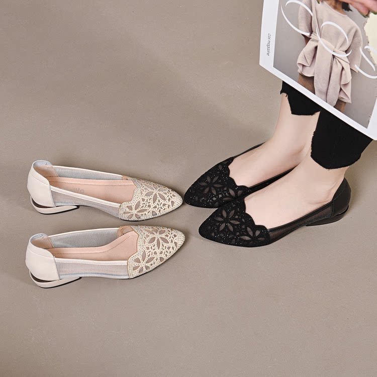 大东妞网纱透气单鞋女3cm低跟夏季百搭防臭久穿不闷脚不累脚凉鞋
