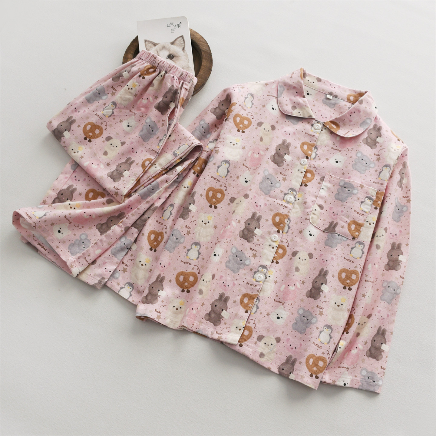 可爱卡通考拉小狗睡衣女款春秋季纯棉磨毛绒布长袖长裤家居服套装