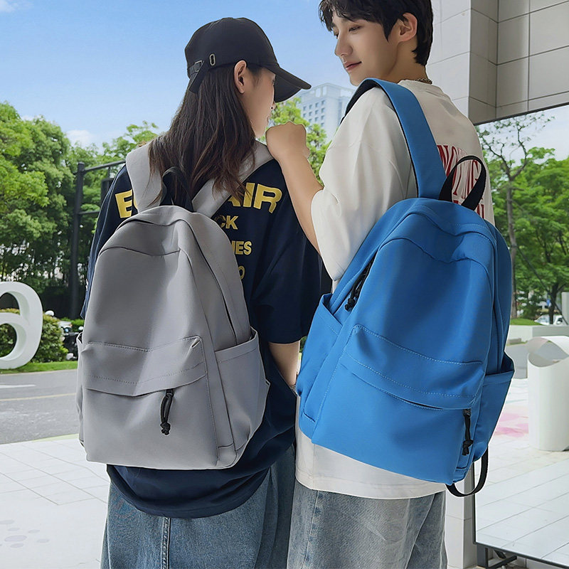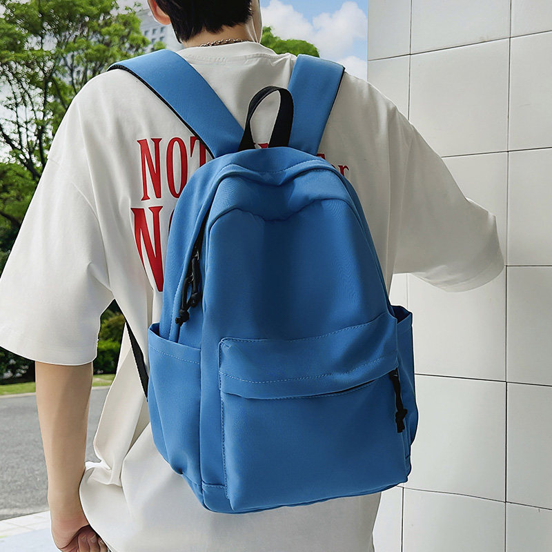 双肩包书包男女大学生大容量背包初中学生黑色牛津布蓝色防水纯色