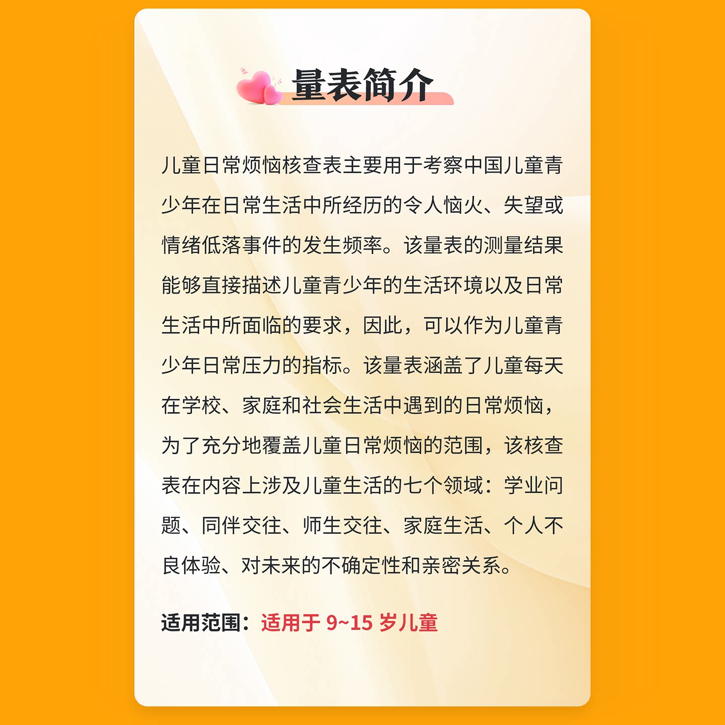 儿童日常烦恼核查表儿童青少年日常生活恼火失望情绪低落在线测评
