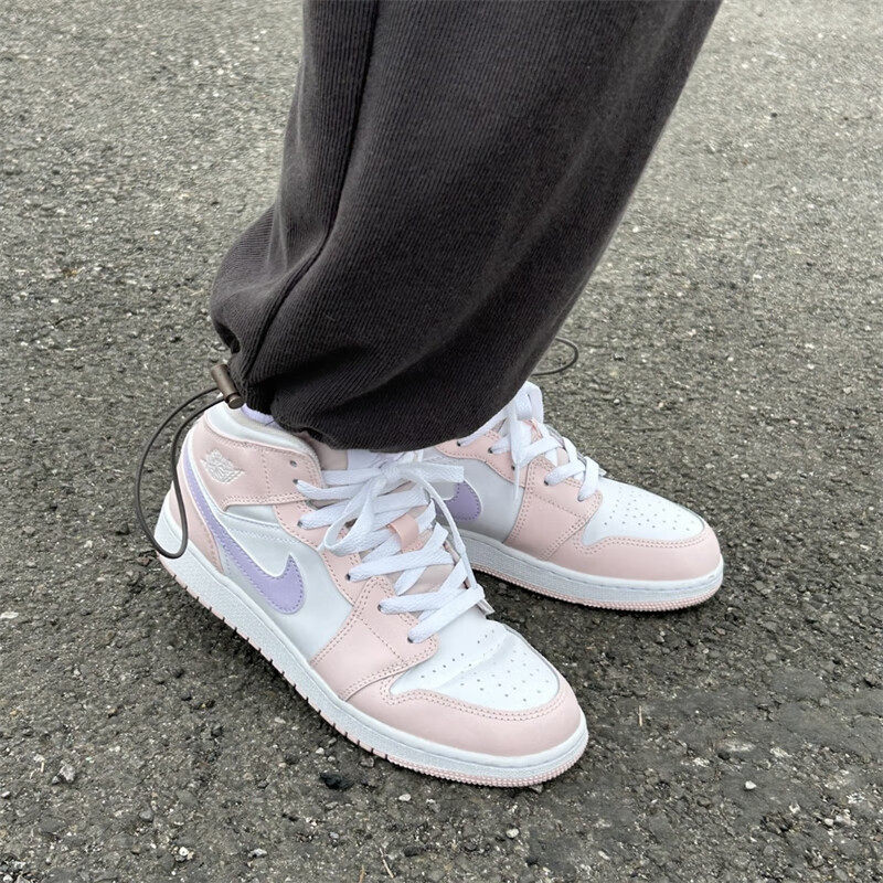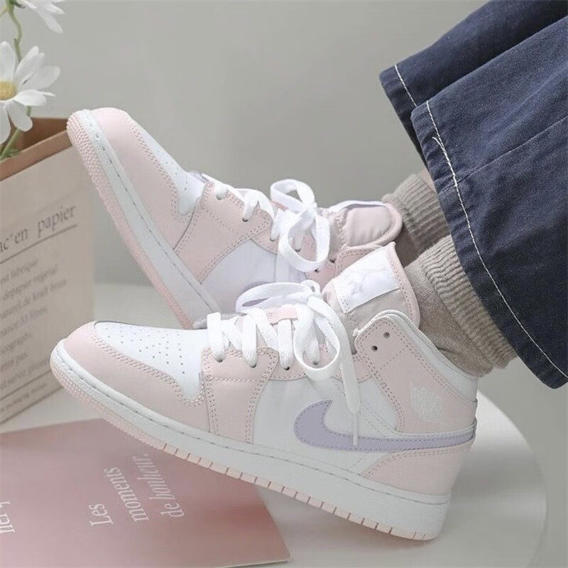 Jordan乔丹粉紫高帮运动鞋正品AJ1板鞋新款复古女鞋减震休闲鞋子