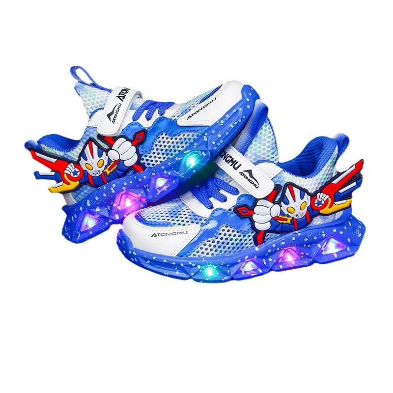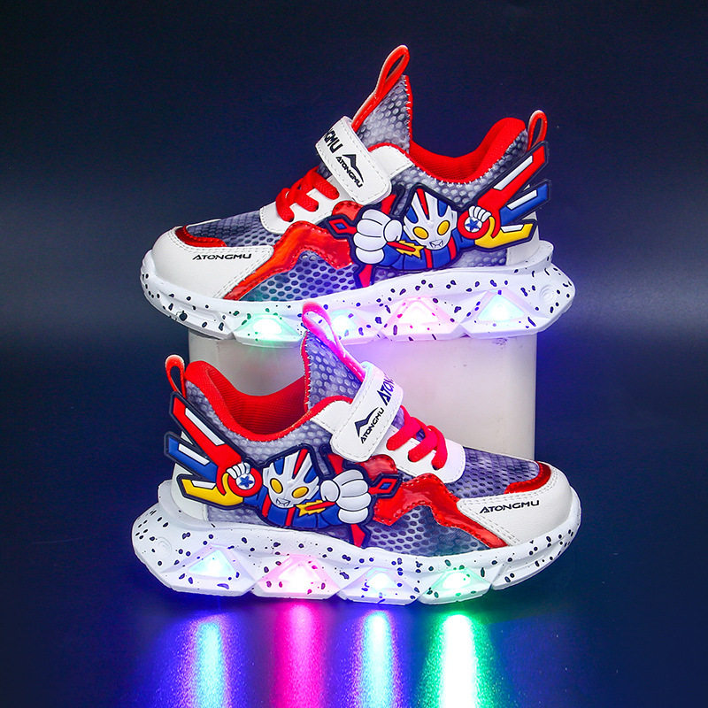 温州品牌奥特曼网面鞋男童透气儿童带灯中小男孩跑步鞋不臭脚运动