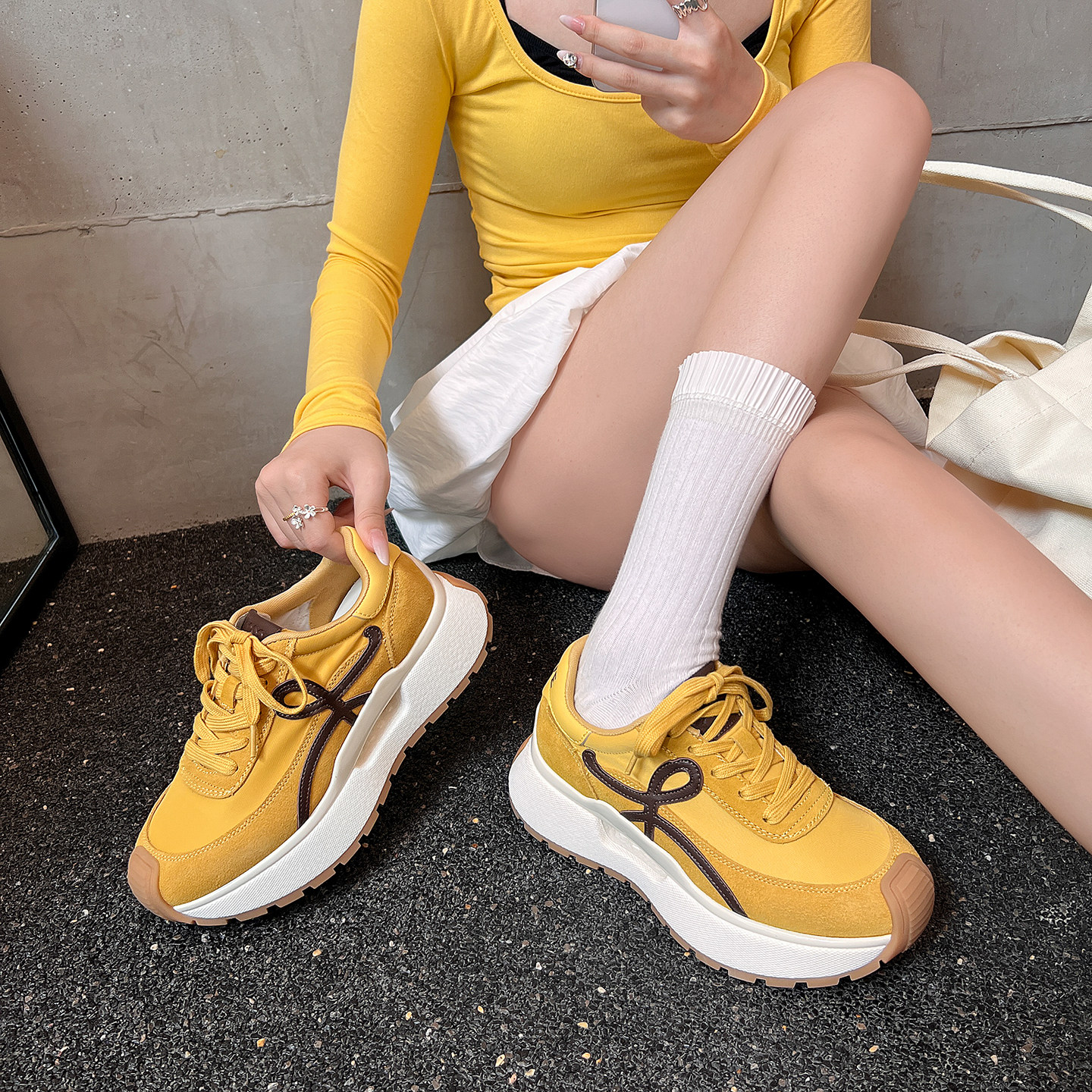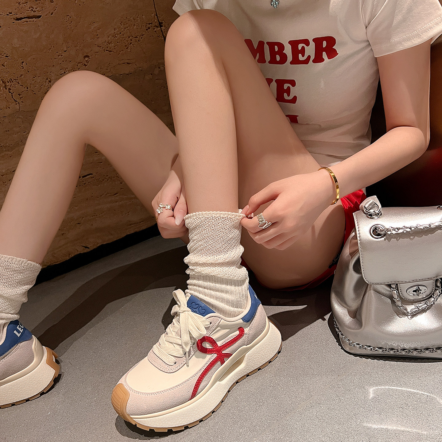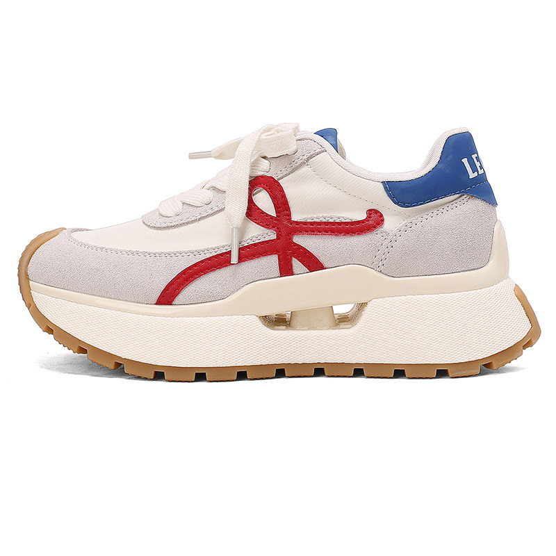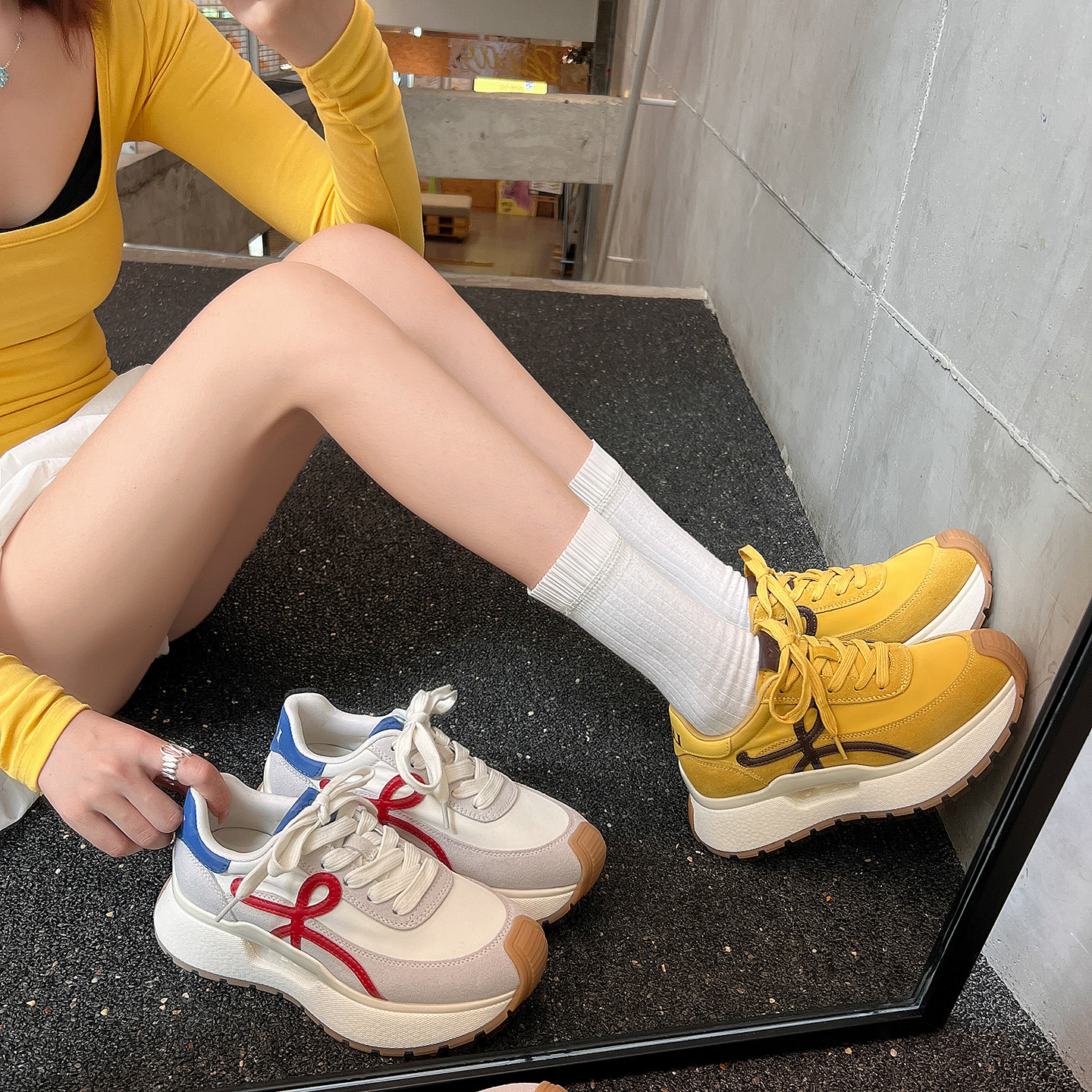 厚底老爹鞋女增高透气华夫运动鞋2025夏季新款真皮布面国潮阿甘鞋