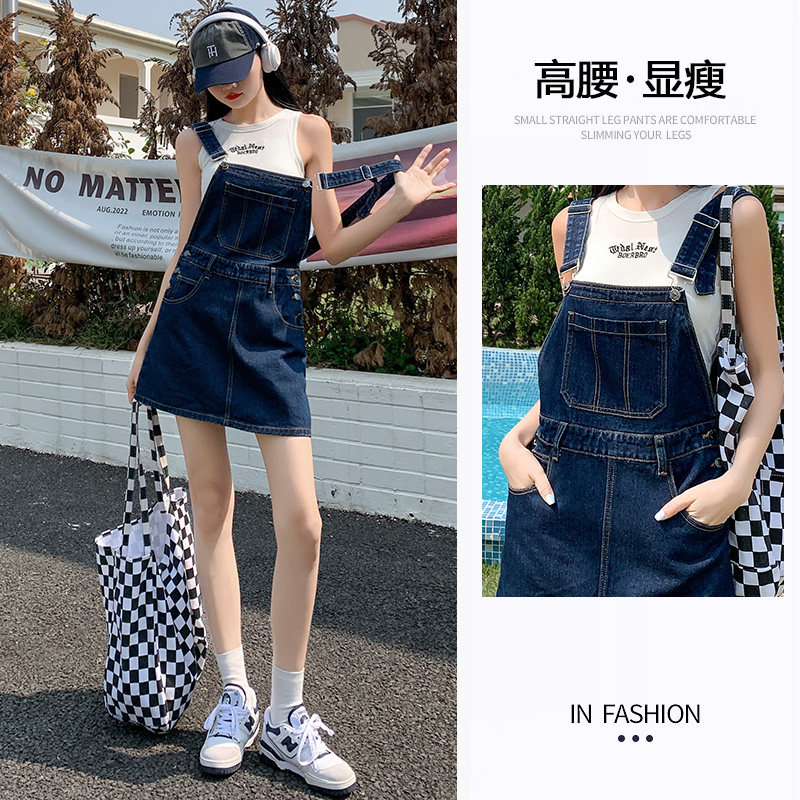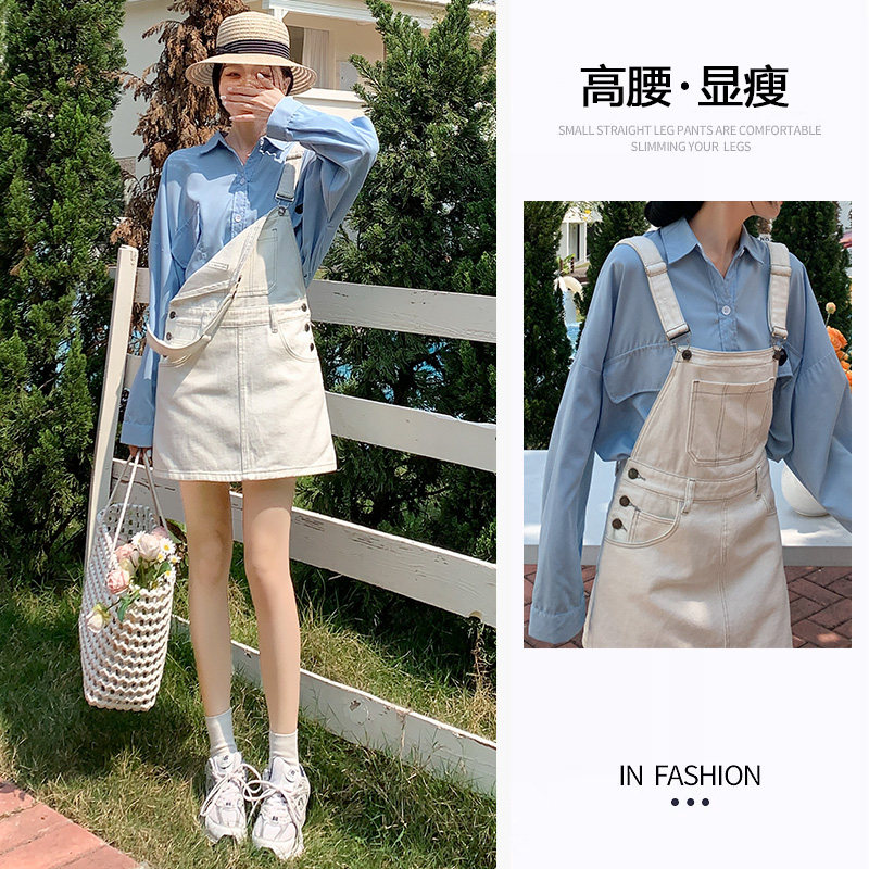 牛仔背带裙女夏季新款洋气减龄显瘦小个子连衣裙吊带修身白色短裙