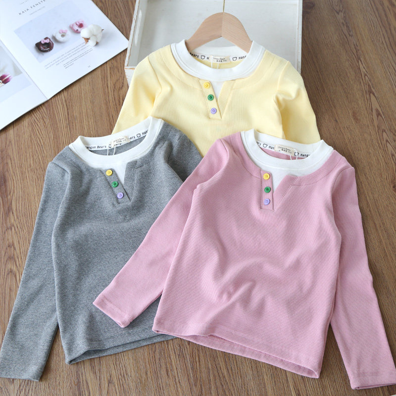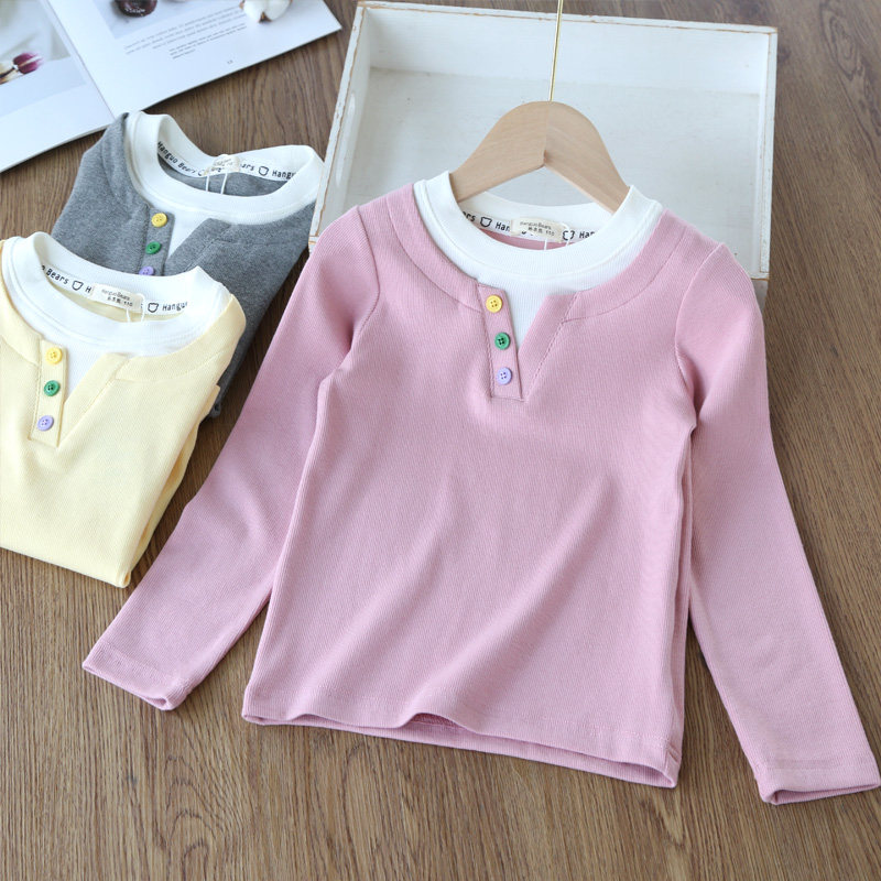 女童长袖T恤春秋装韩系儿童宝宝假两件打底衫薄款小女孩洋气上衣