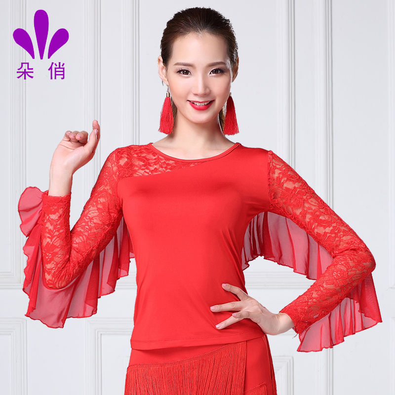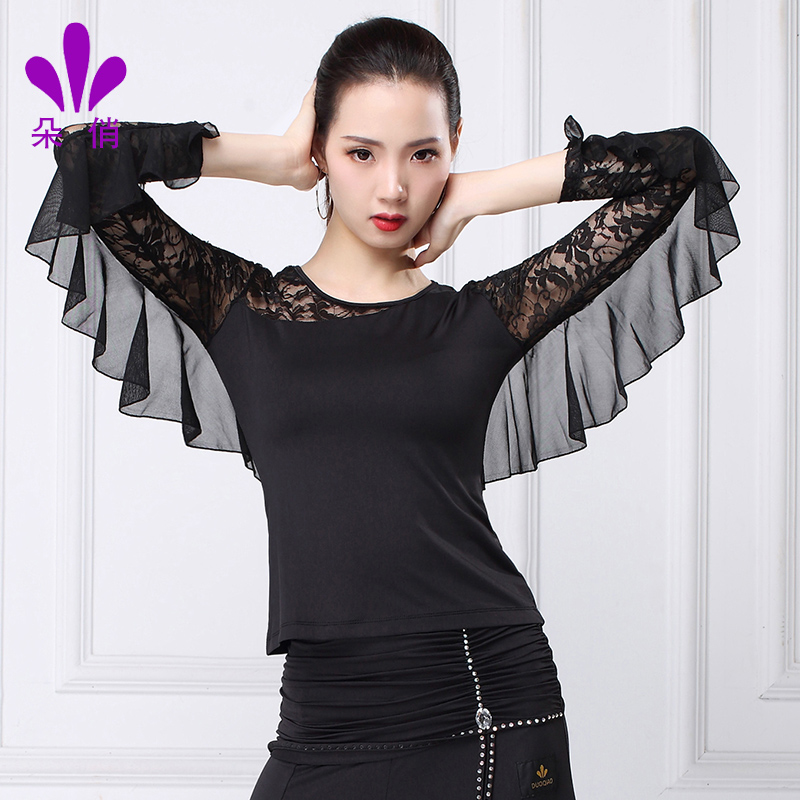 朵俏拉丁舞摩登形体服装女成人春夏新款练功服舞蹈上衣广场舞衣