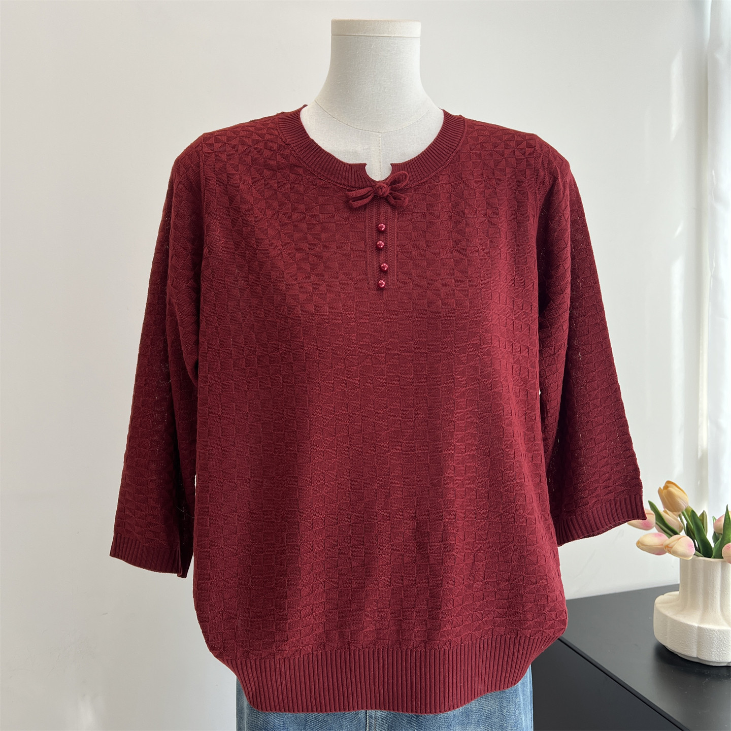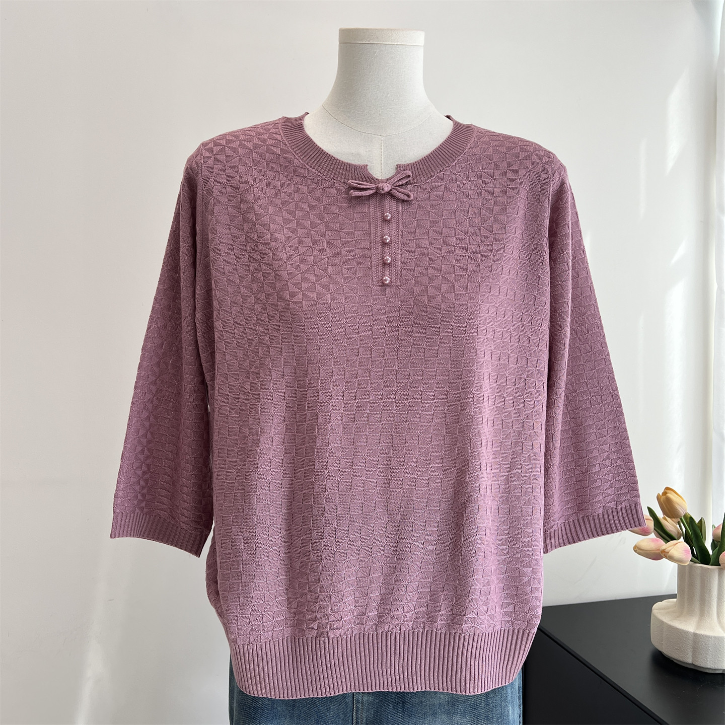 妈妈春装2026新款早春七分袖针织小衫中老年女装半袖T恤薄款上衣