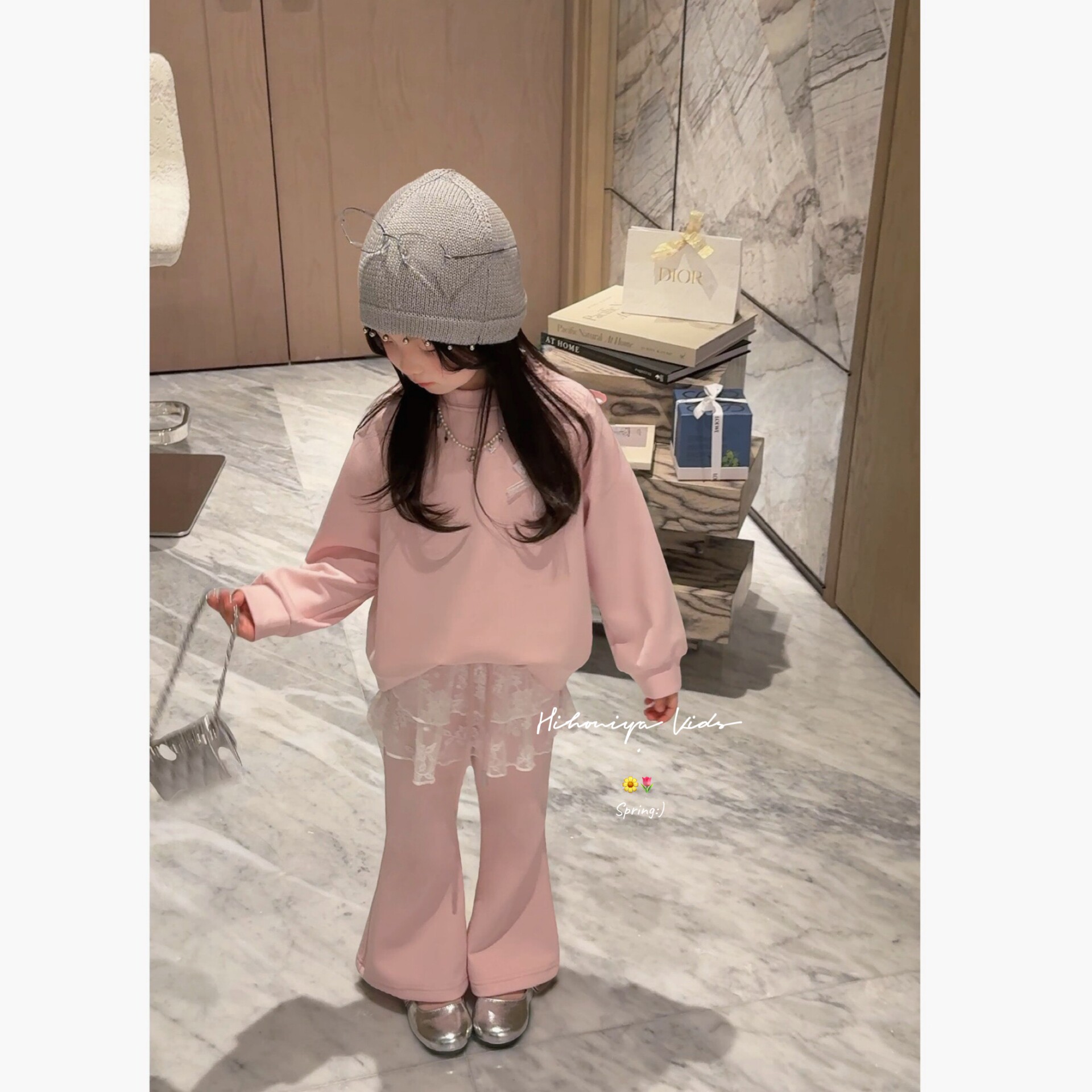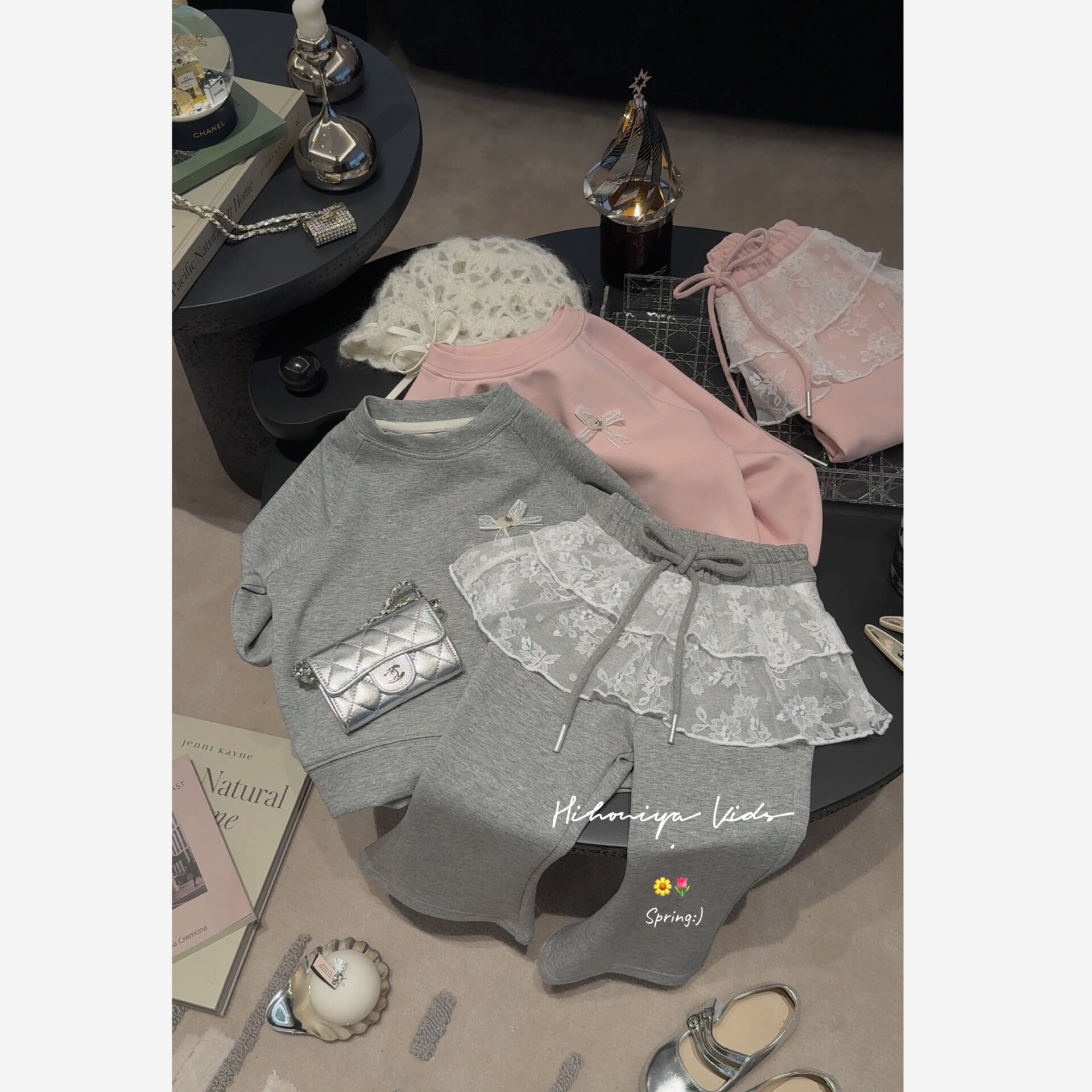 Spring韩国童装2026春季新款亲子慵懒减龄屁帘卫衣套装女童两件套