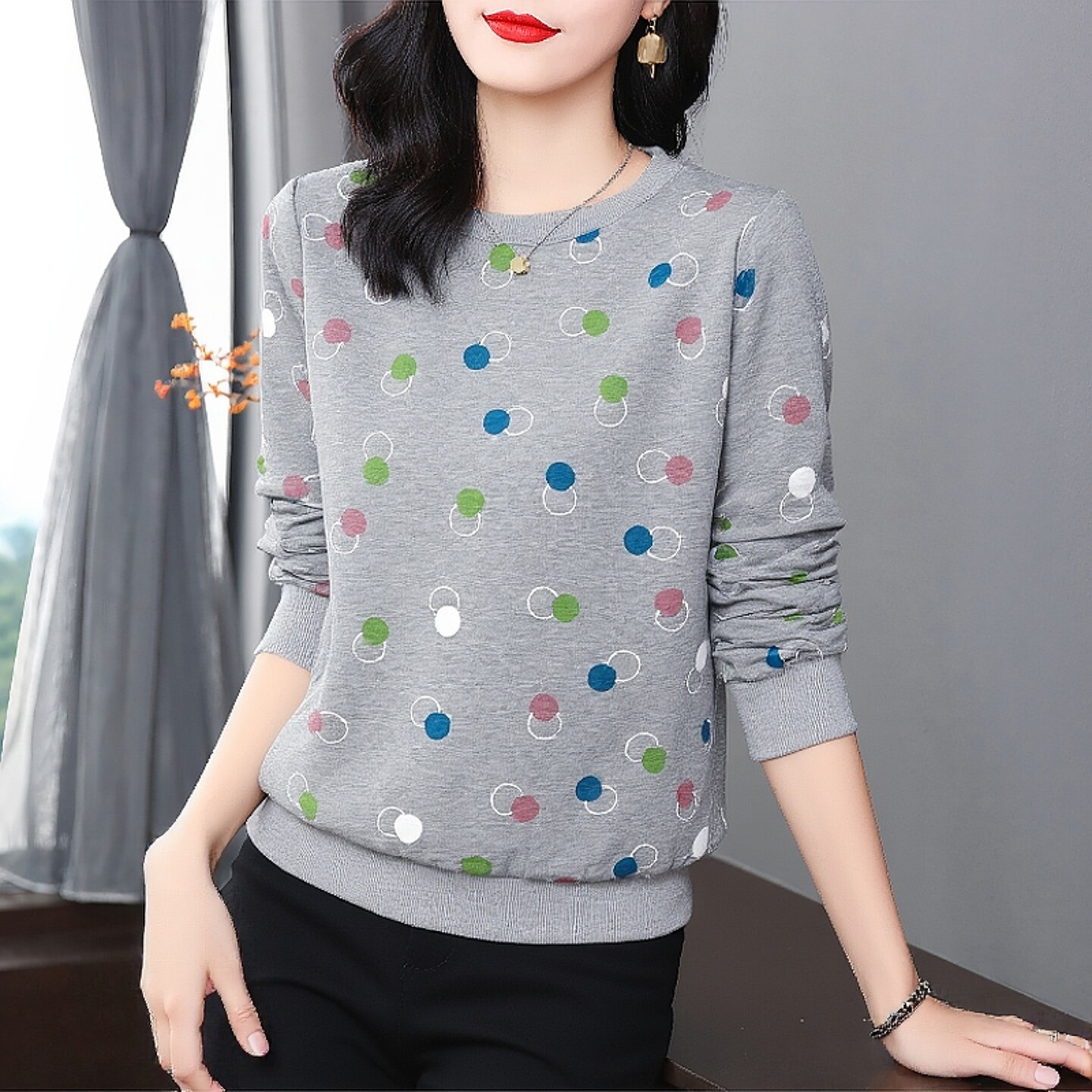 长袖t恤女宽松洋气百搭圆领卫衣女款2026春季新款内搭打底上衣服