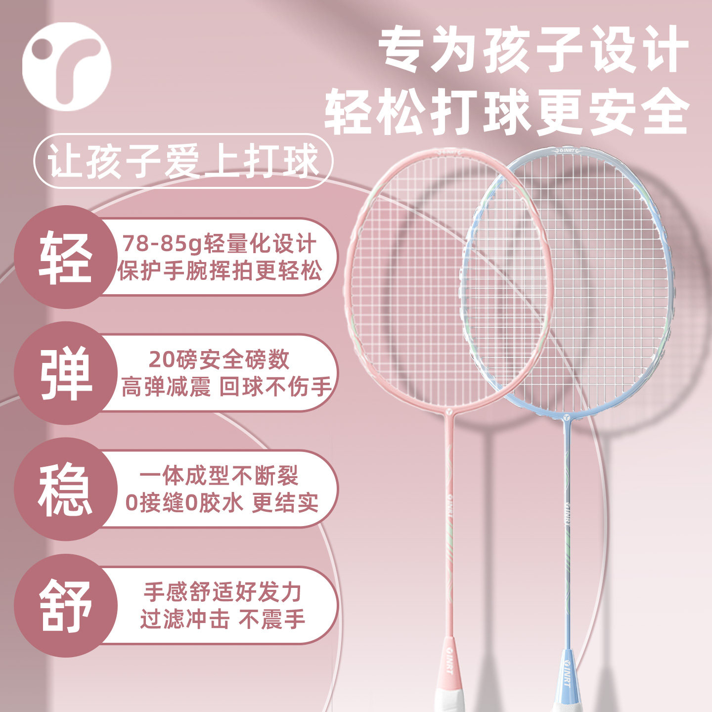儿童羽毛球拍6到12岁小学生专用官方旗舰店正品全碳素超轻套装女