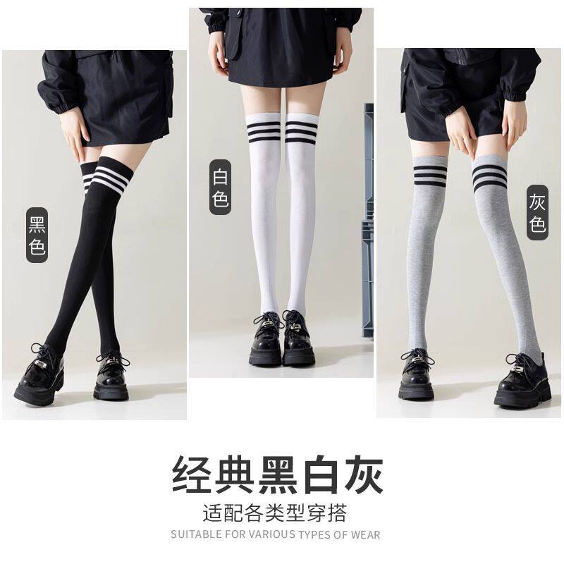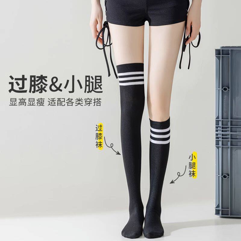三杠过膝小腿袜女长筒夏季薄款纯棉白色袜子jk夏天学生足球长腿夏