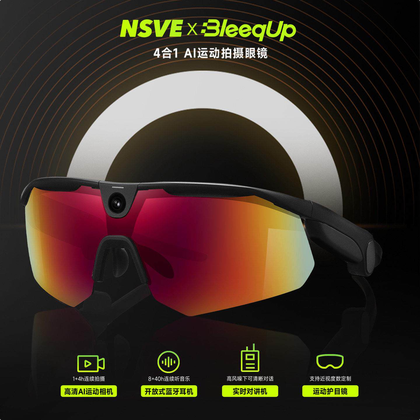 BleeqUp智能运动拍摄眼镜相机骑行户外徒步马拉松爬山专业级防风