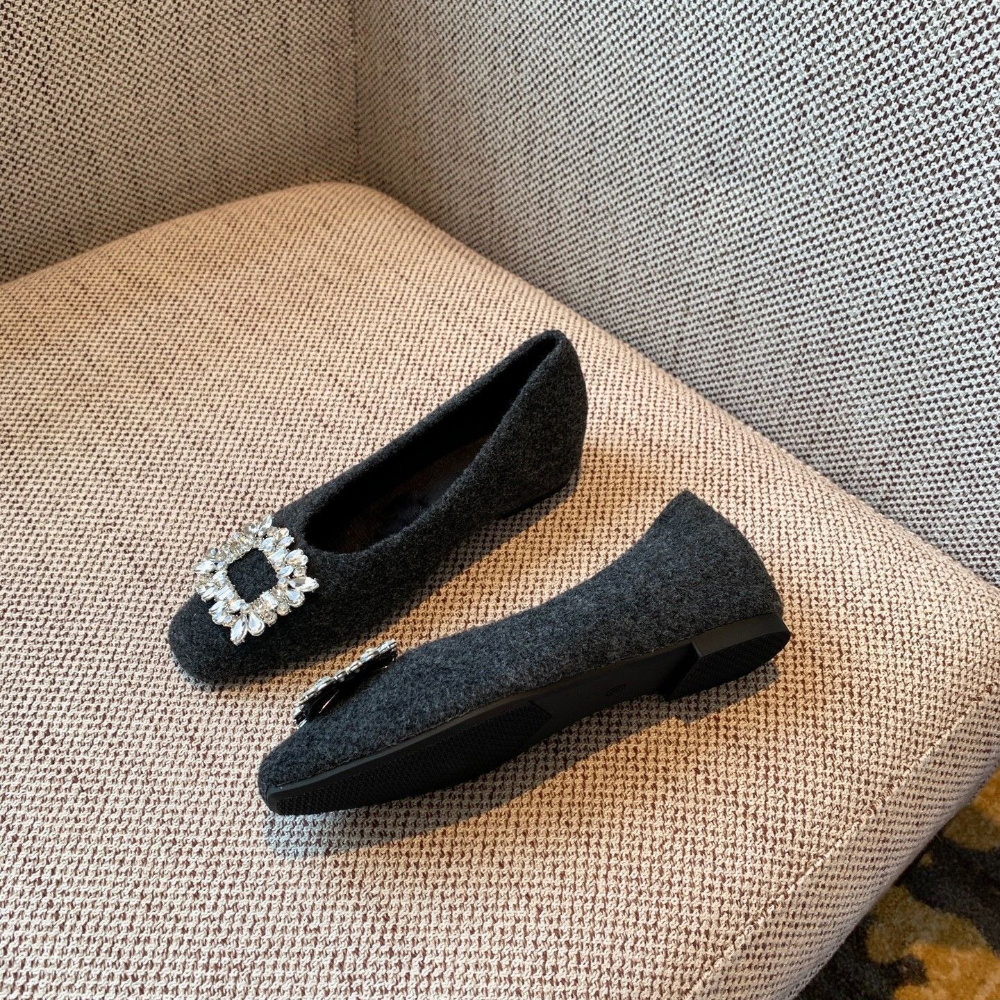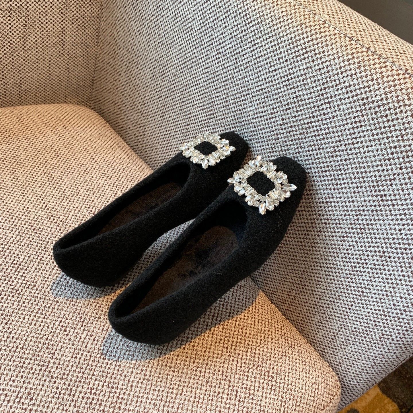 2026年新内增高加绒毛毛鞋方扣浅口鞋小个子女单鞋水钻浅口保暖