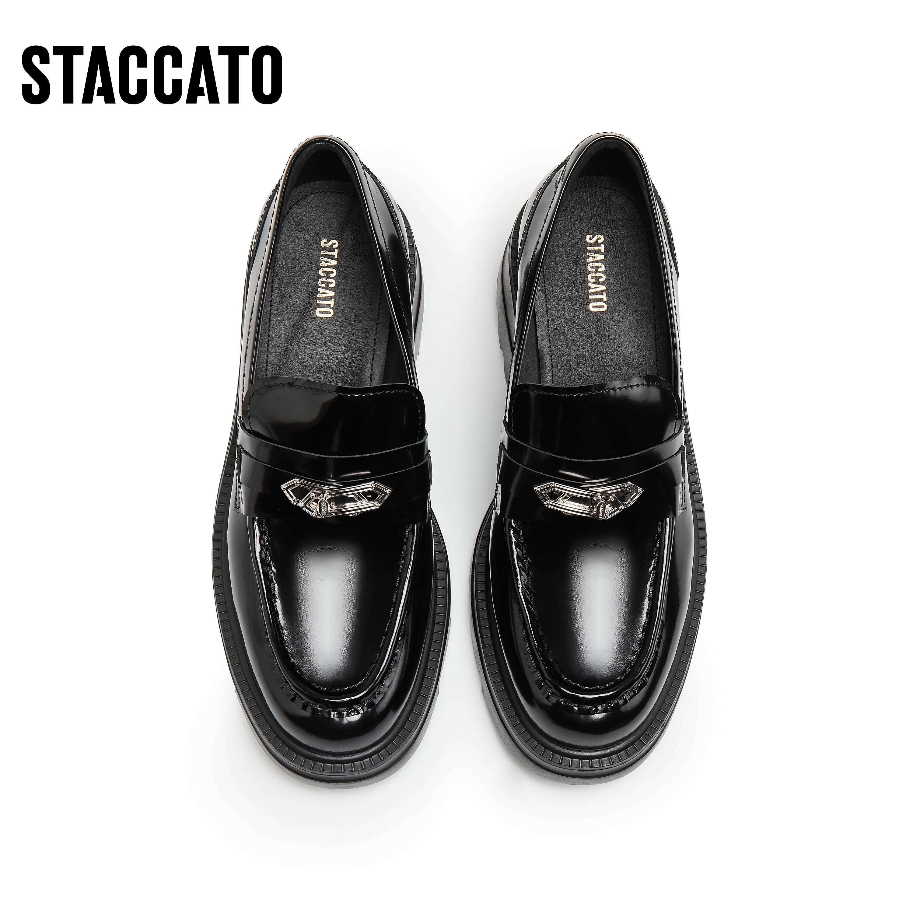 思加图官方正品厚底乐福鞋女真皮软底不累脚女鞋EEZ45CA5