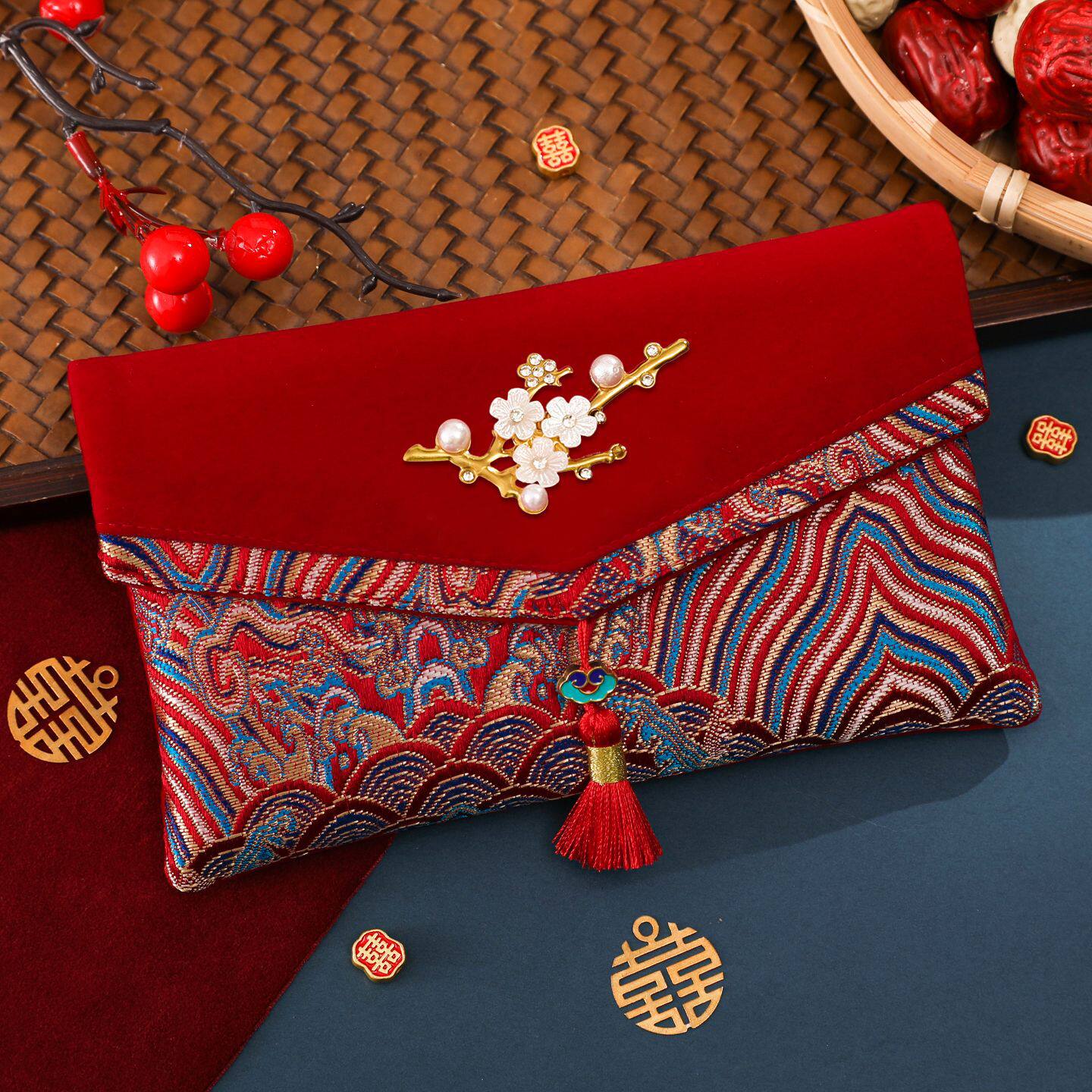 跨境新年红包布艺高档绸缎刺绣万元利是封生日金榜题名中式新现货
