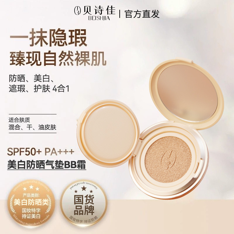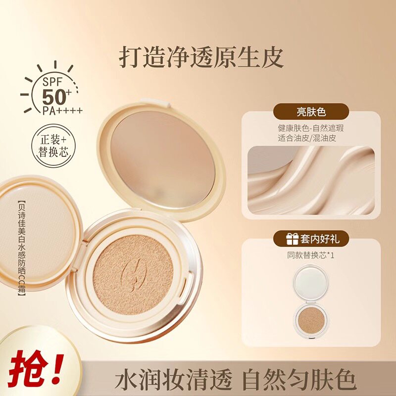 贝诗佳美白防晒cc霜气垫遮瑕隔离三合一粉底液持久不脱妆保湿提亮