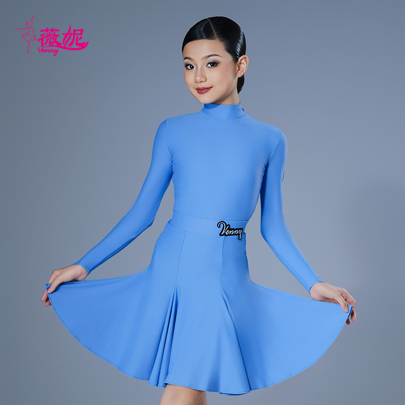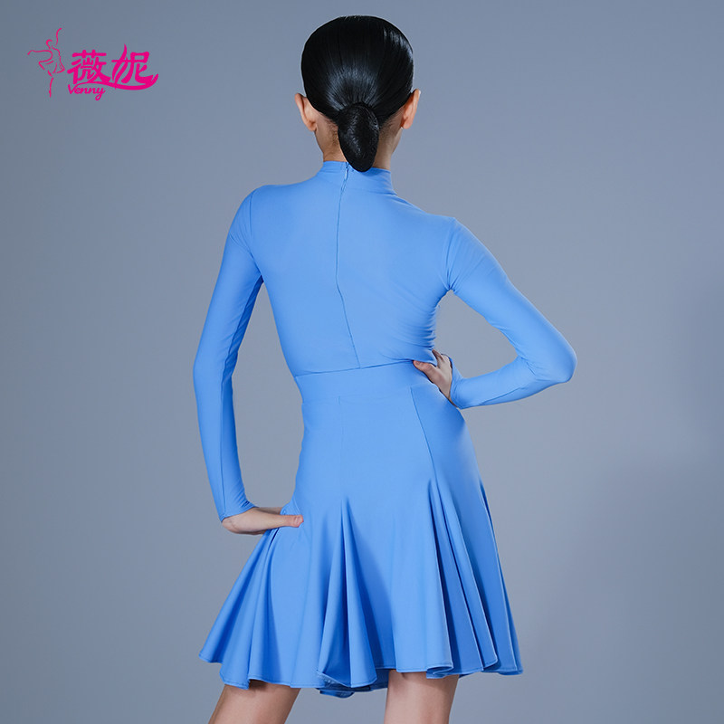 薇妮拉丁舞服比赛规定赛服女童专业长袖高领无鱼骨体协少儿舞蹈裙