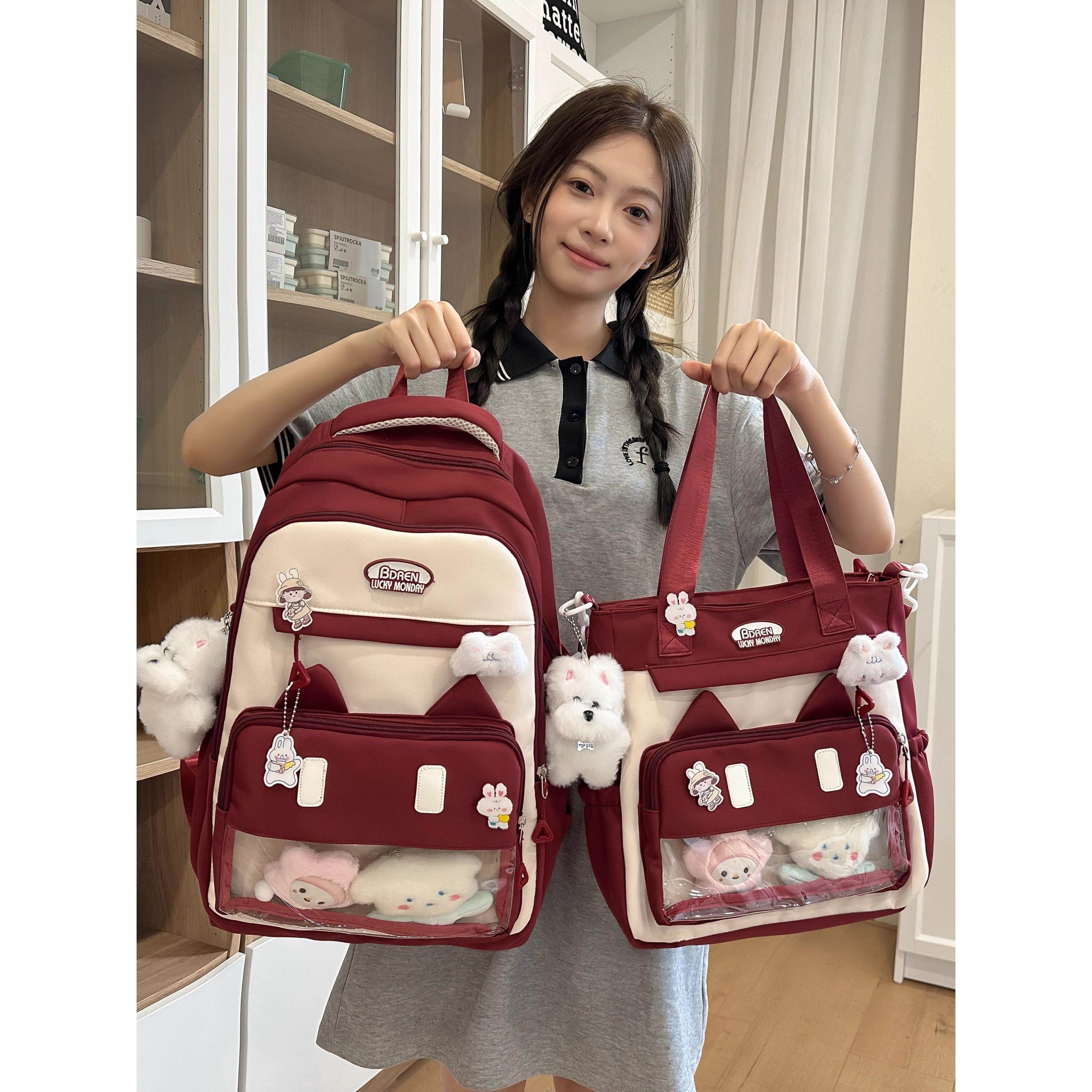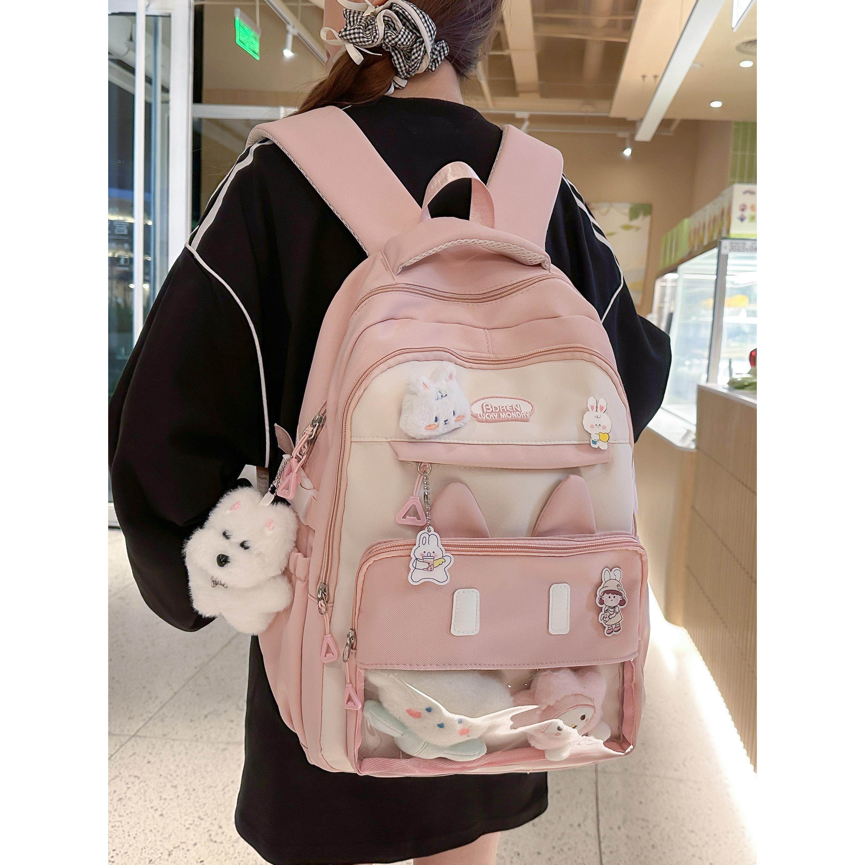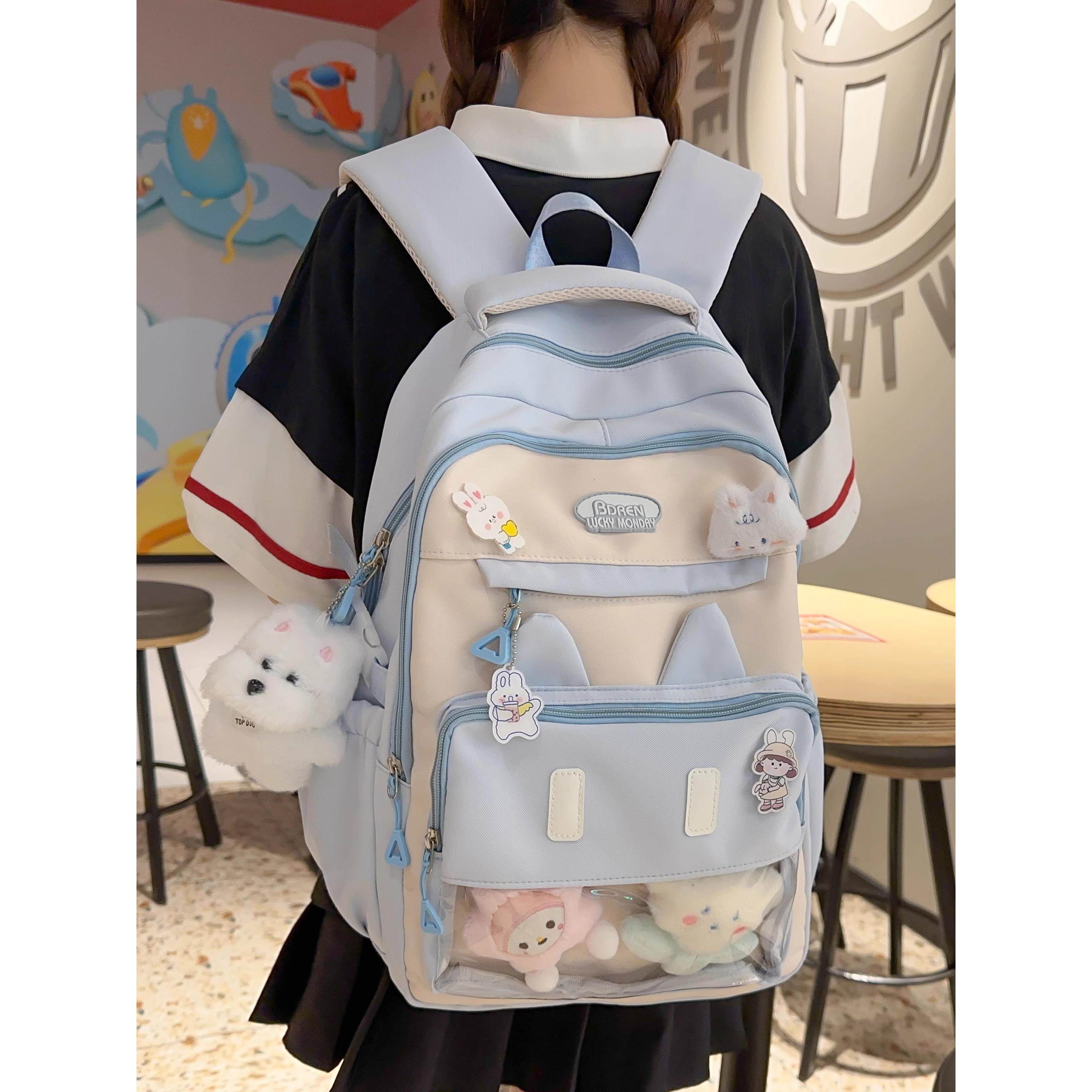 书包初中生女生高颜值黑色耐脏大容量ins小众女透明隔层痛包双肩