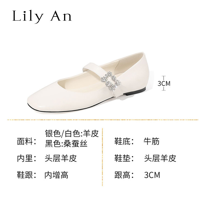 【Lily An x 甜美千金】方头平底一字带单鞋女真皮内增高玛丽珍鞋