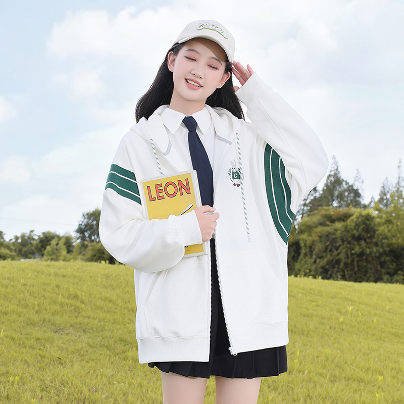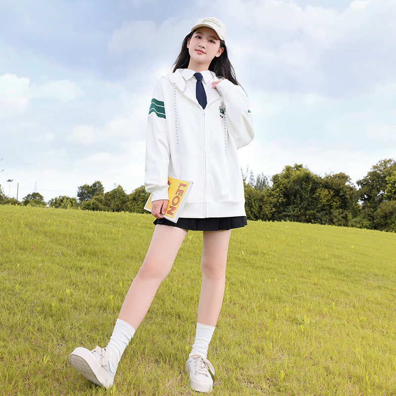 初中生春秋装外套装加绒卫衣少女休闲上衣加厚连帽高中学生青少年