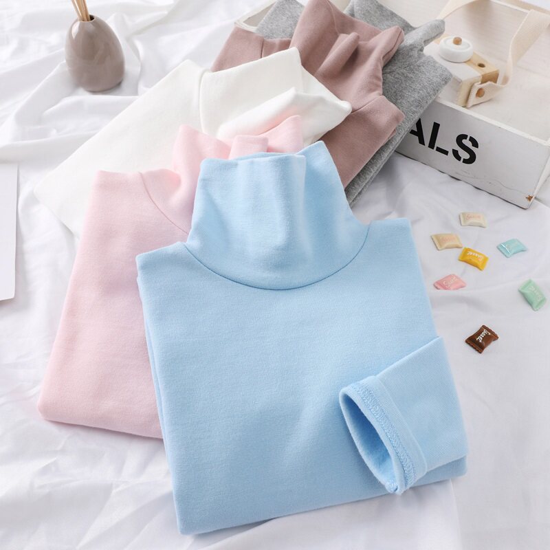儿童高领打底衫秋冬纯棉白色女大童打底衣男童内搭上衣女童秋衣