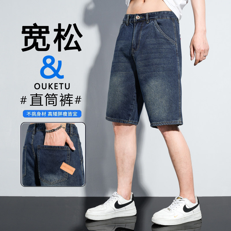 宽松复古牛仔短裤男士夏季薄款2026年潮牌休闲男款裤子男五分中裤