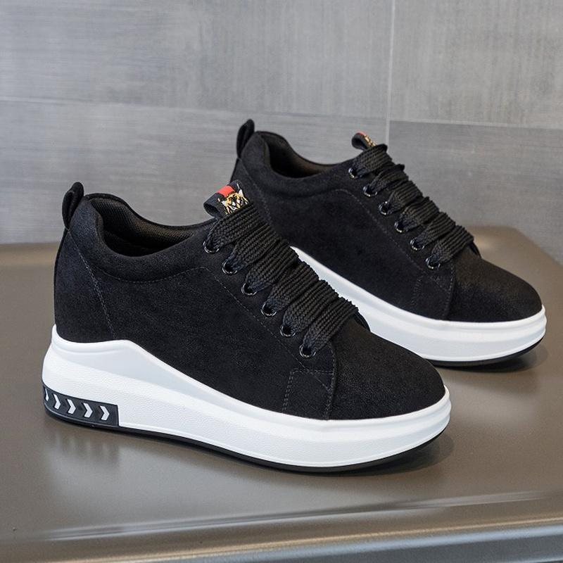 黑色内增高女鞋2025年春天流行爆款厚底松糕旅游休闲运动鞋阿甘鞋