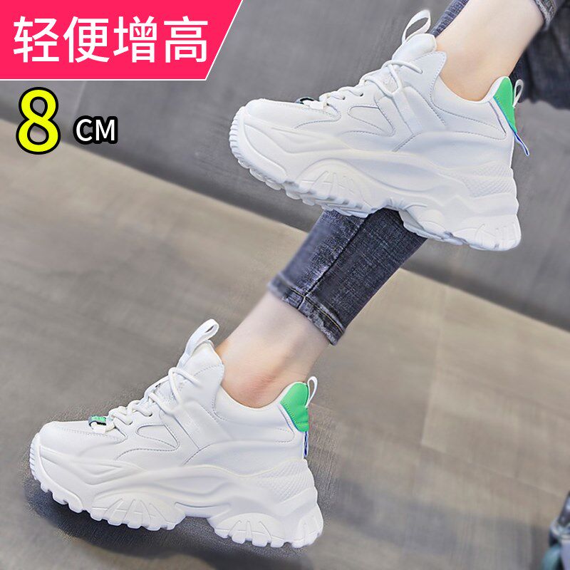 白色老爹鞋女款潮显脚小2024年春季新款松糕厚底8cm内增高小白鞋