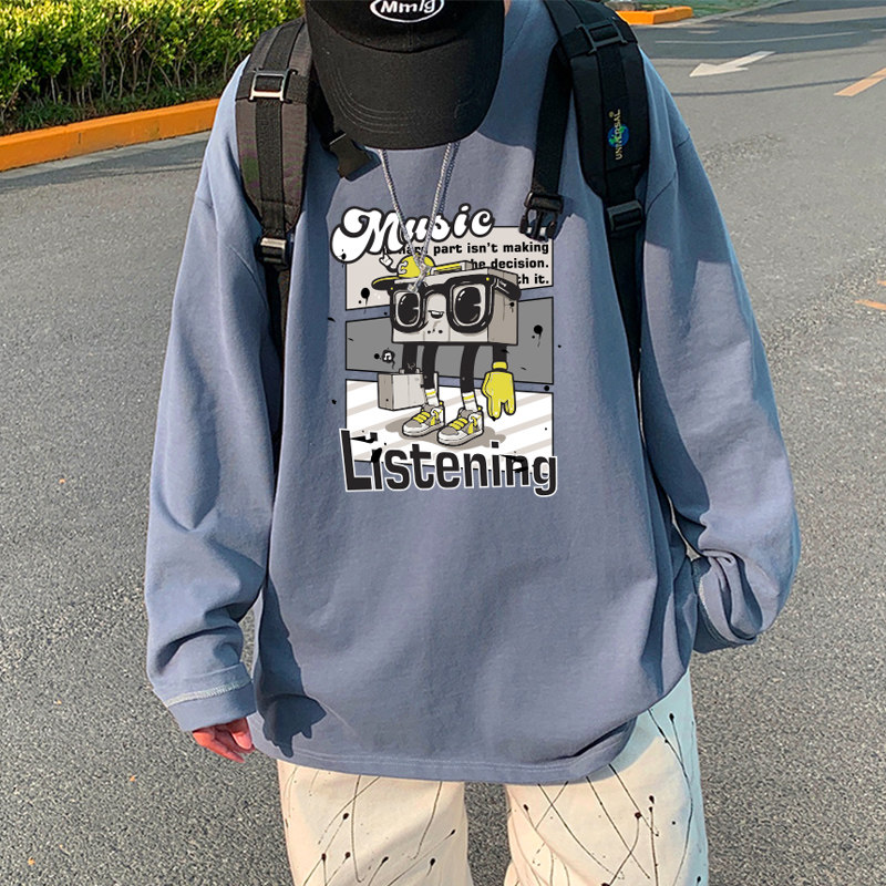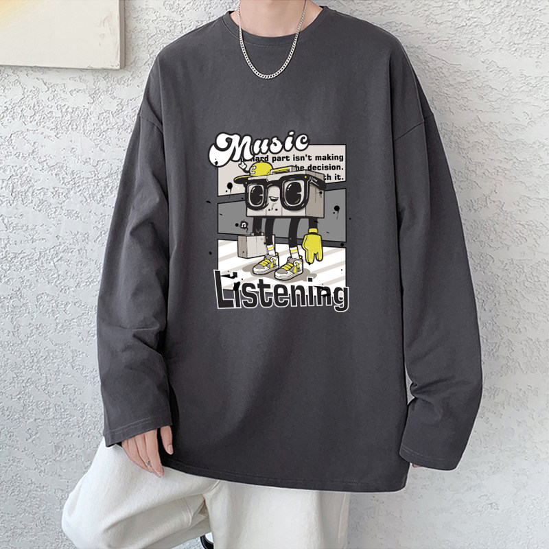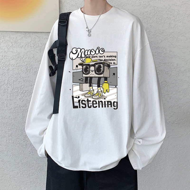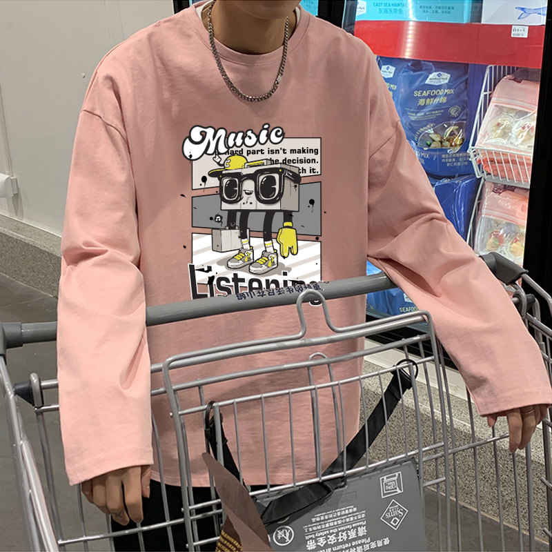 春夏季青少年男生长袖t恤男潮流大码潮牌高中初中学生t恤纯棉薄款