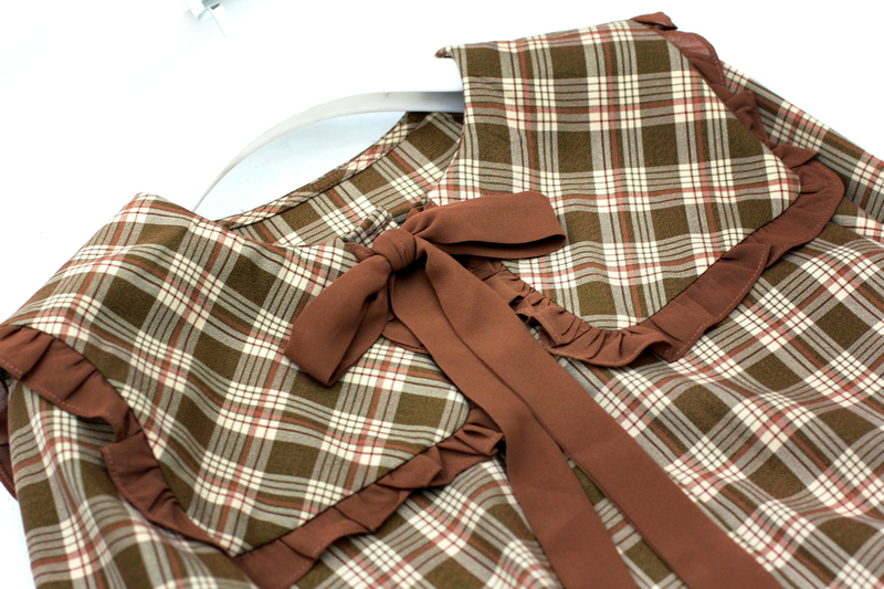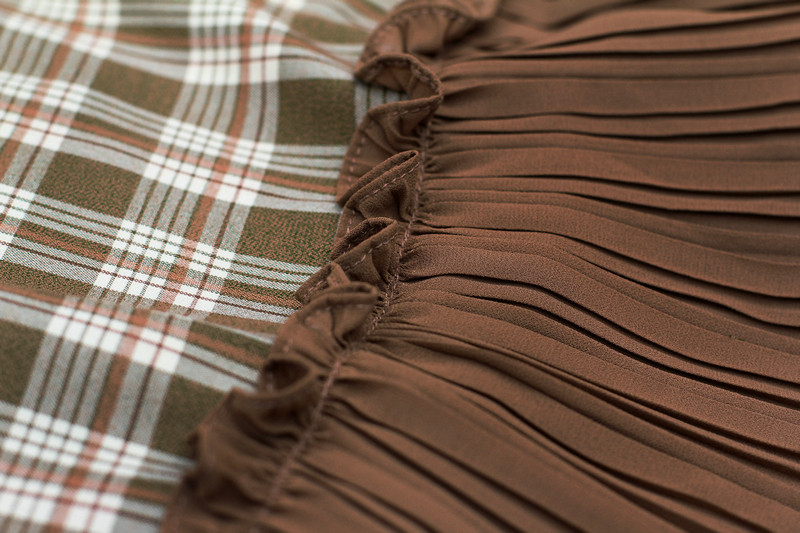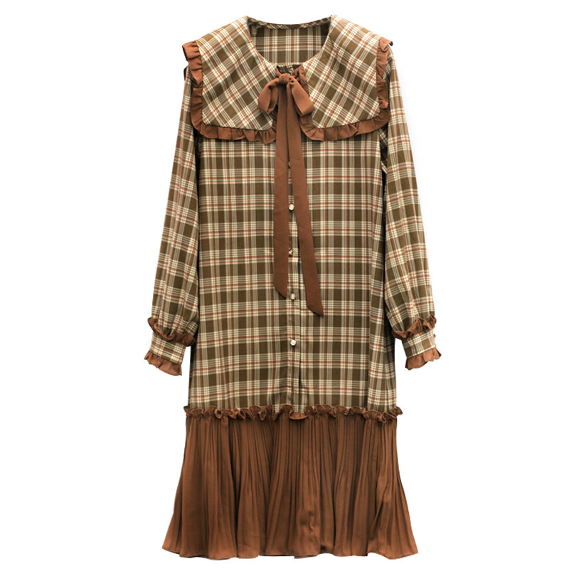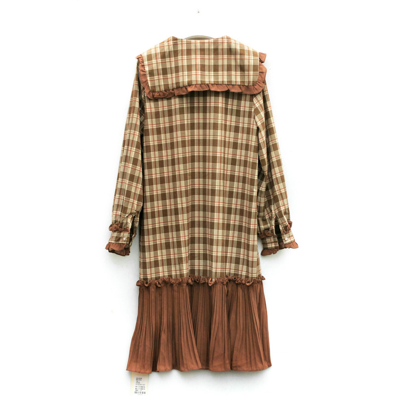 专柜品牌撤柜折扣依系列2020春装减龄大方领系带格子百褶摆连衣裙