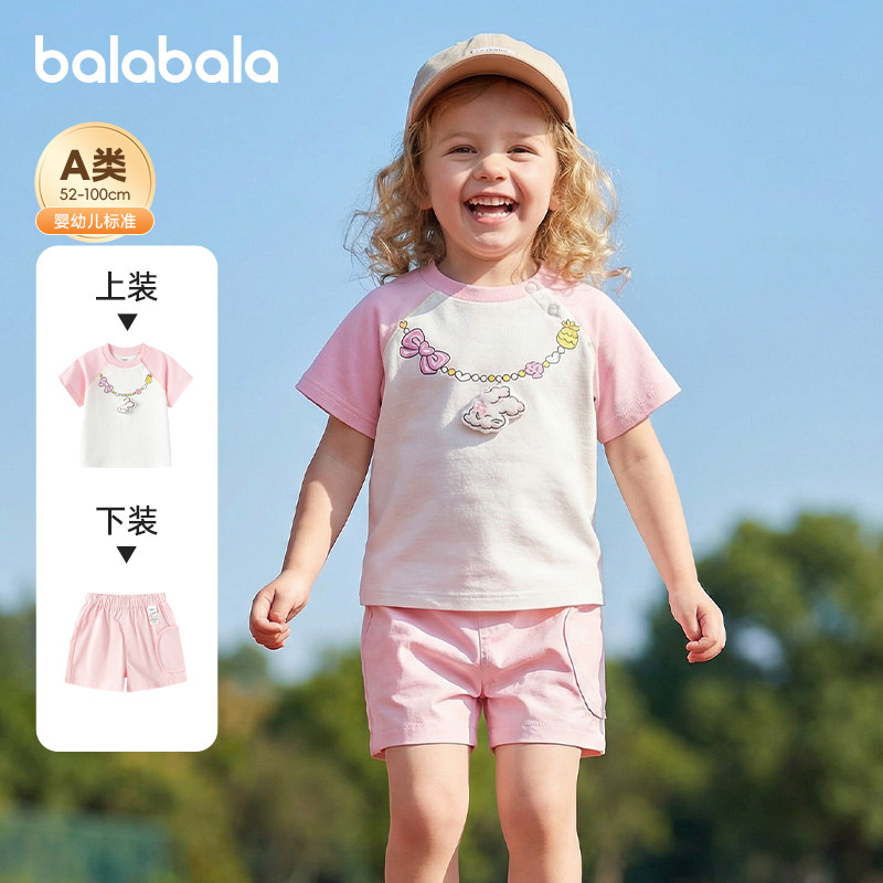 巴拉巴拉女童短袖套装婴儿纯棉T恤小童两件套2026夏装新款童装潮