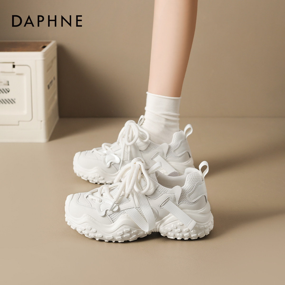 达芙妮老爹鞋女款2026新款小白鞋增高女鞋子网面透气休闲运动夏季