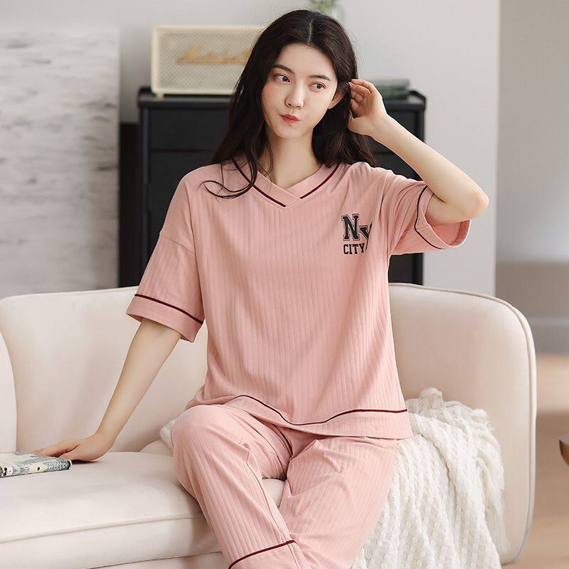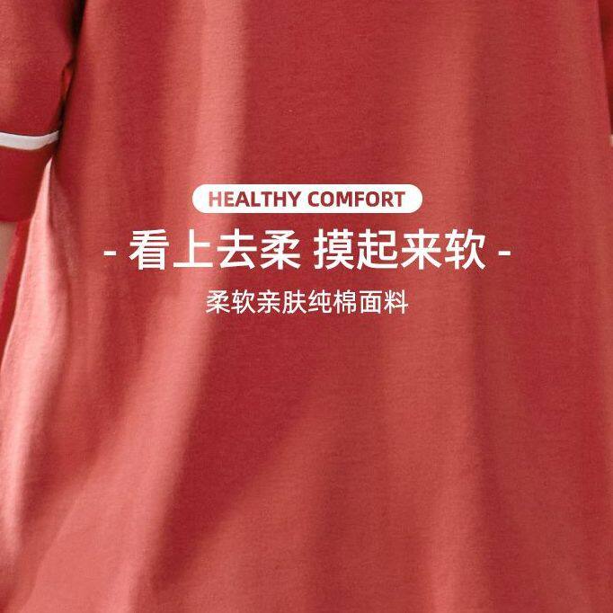 女款睡衣2026新款夏季纯棉玫红字母印花上衣七分裤可外穿家居服
