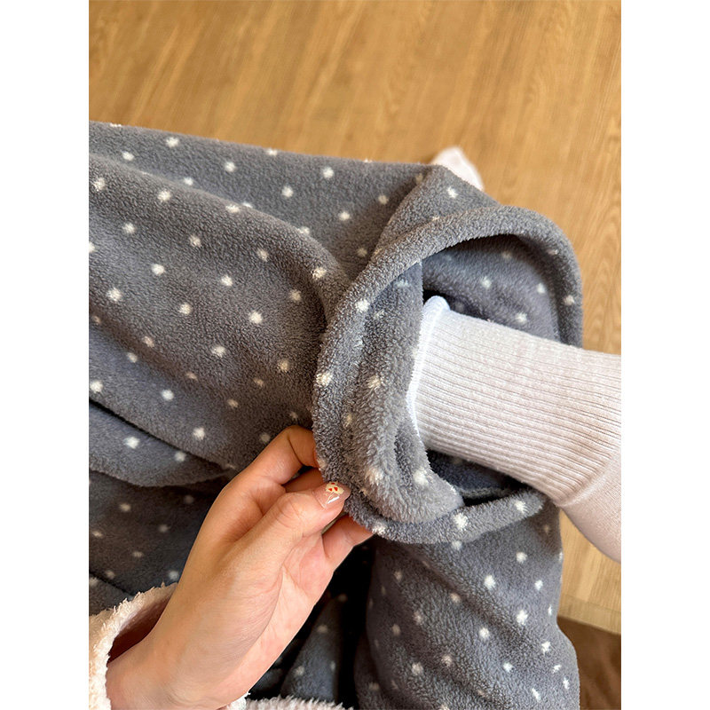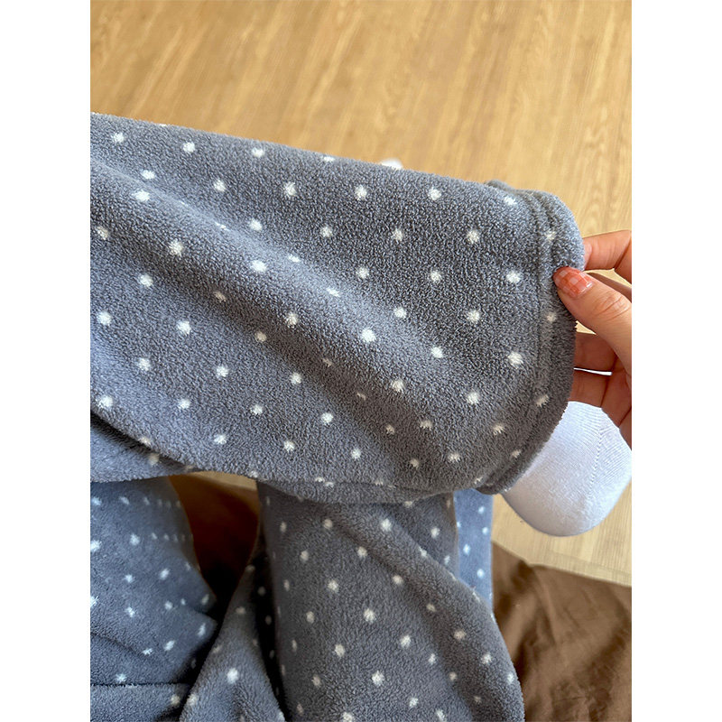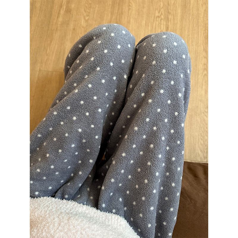 ins慵懒风少女波点加厚睡裤女秋冬季新款家居服珊瑚绒遛弯裤长裤