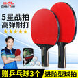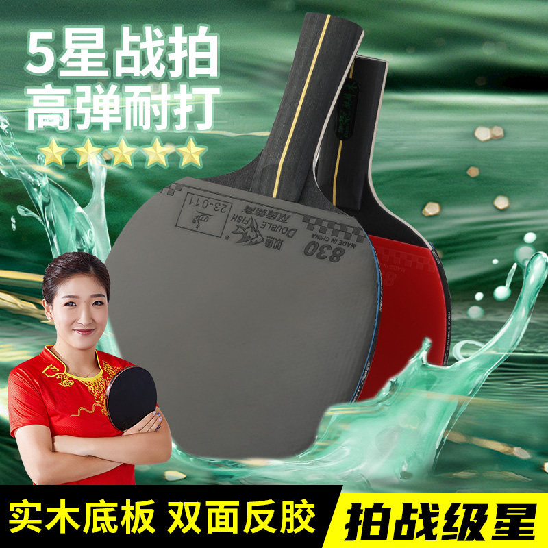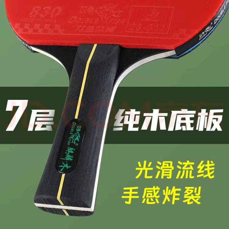 双鱼乒乓球拍麒麟木双面反胶高弹力胶皮横拍长柄学生初学者训练拍