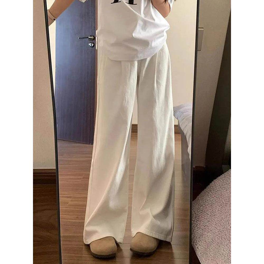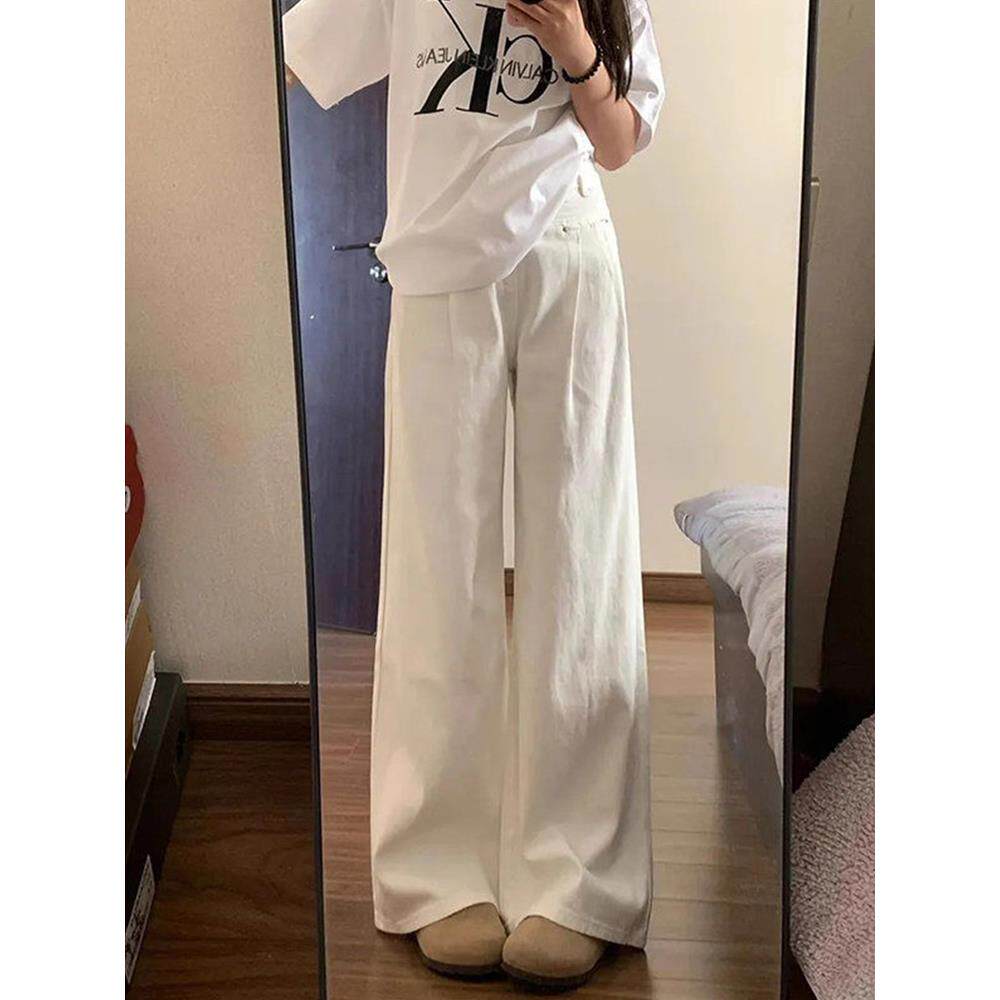 小个子白色裤子女款夏薄款白色牛仔裤高腰直筒阔腿长裤休闲裤