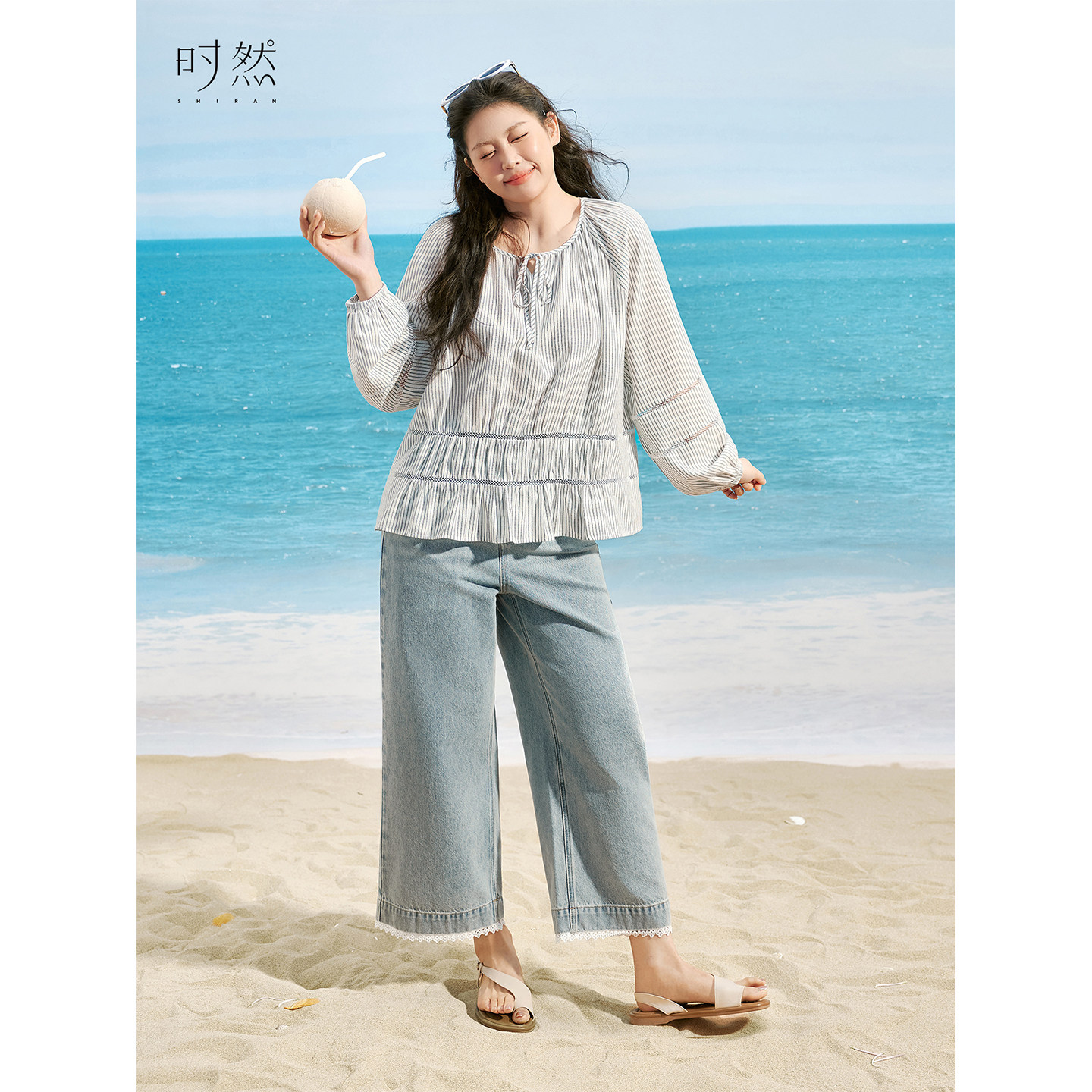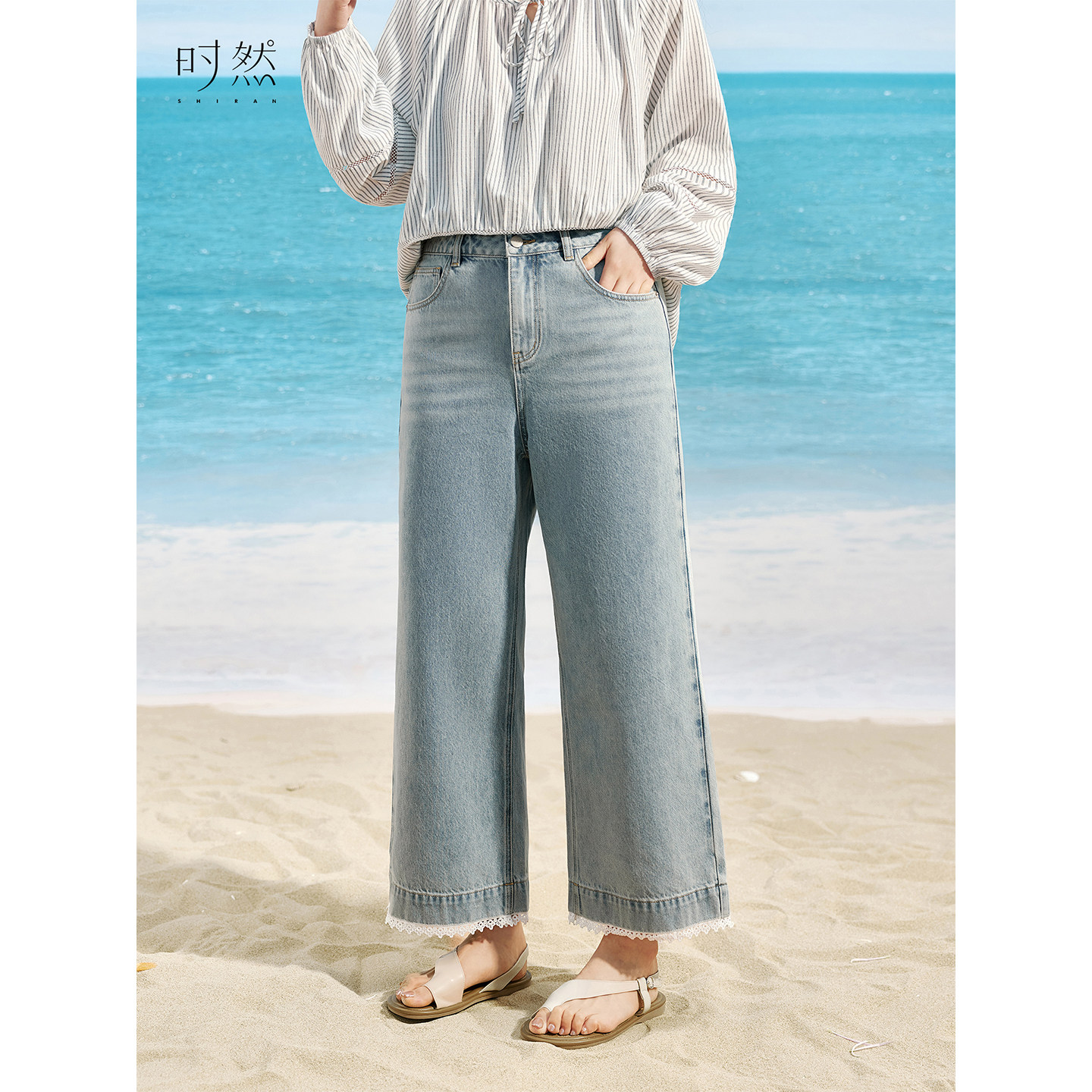时然大码微胖MM2026年夏季新款韩系简约百搭洋气显瘦九分牛仔裤