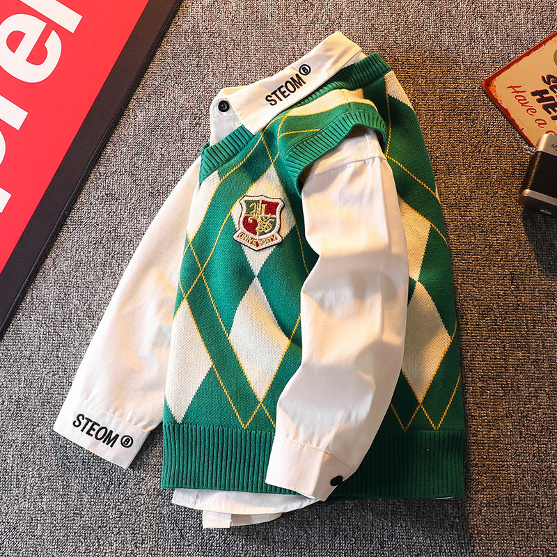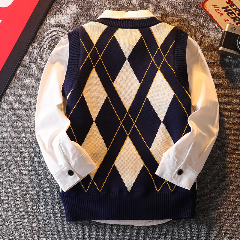 男童学院毛衣春秋装马甲中大童男孩纯棉外穿针织背心儿童韩版时髦