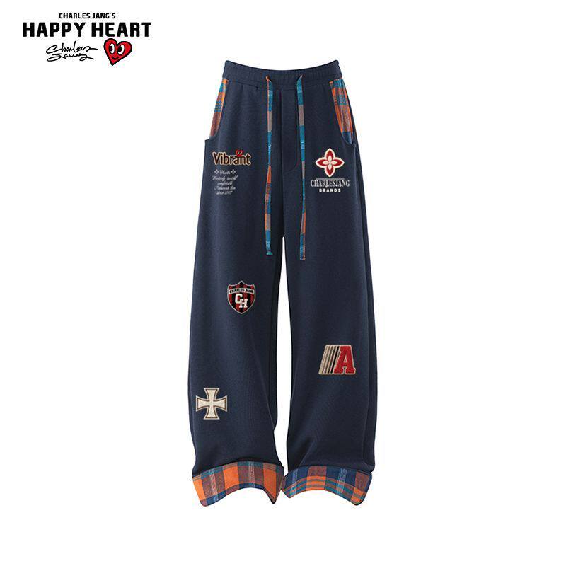 311线报网描述:查尔斯桃心美式徽章印花拼接休闲卫裤男女春
