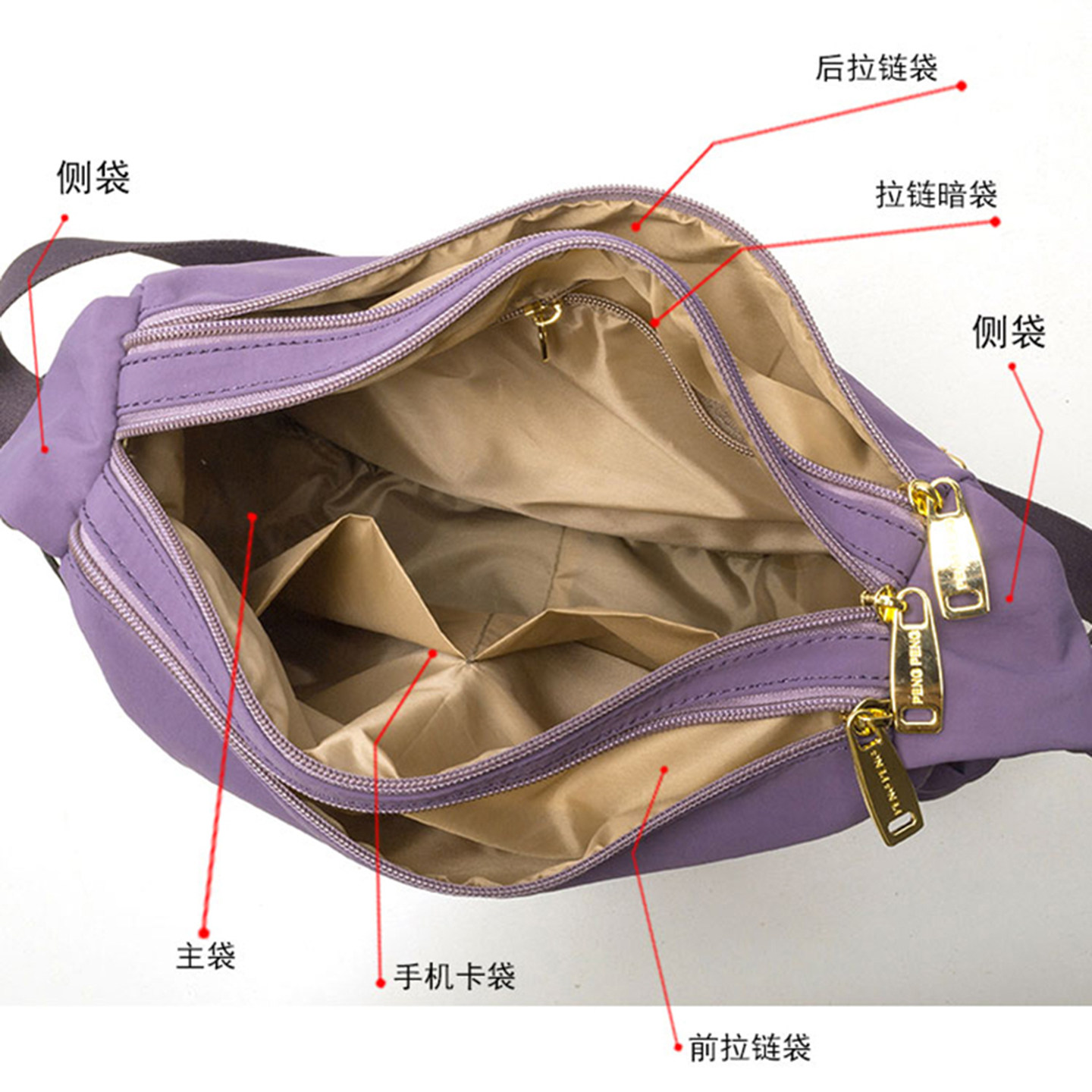 大容量超轻便通勤斜挎包女2025文艺休闲百搭多口袋尼龙布单肩包包