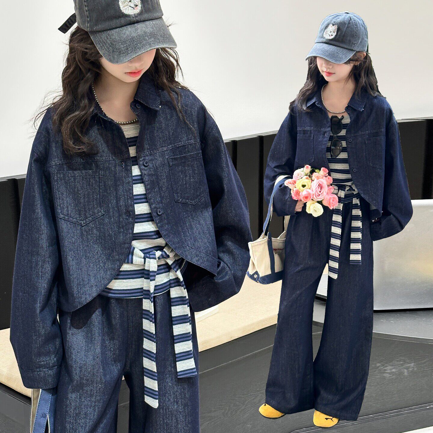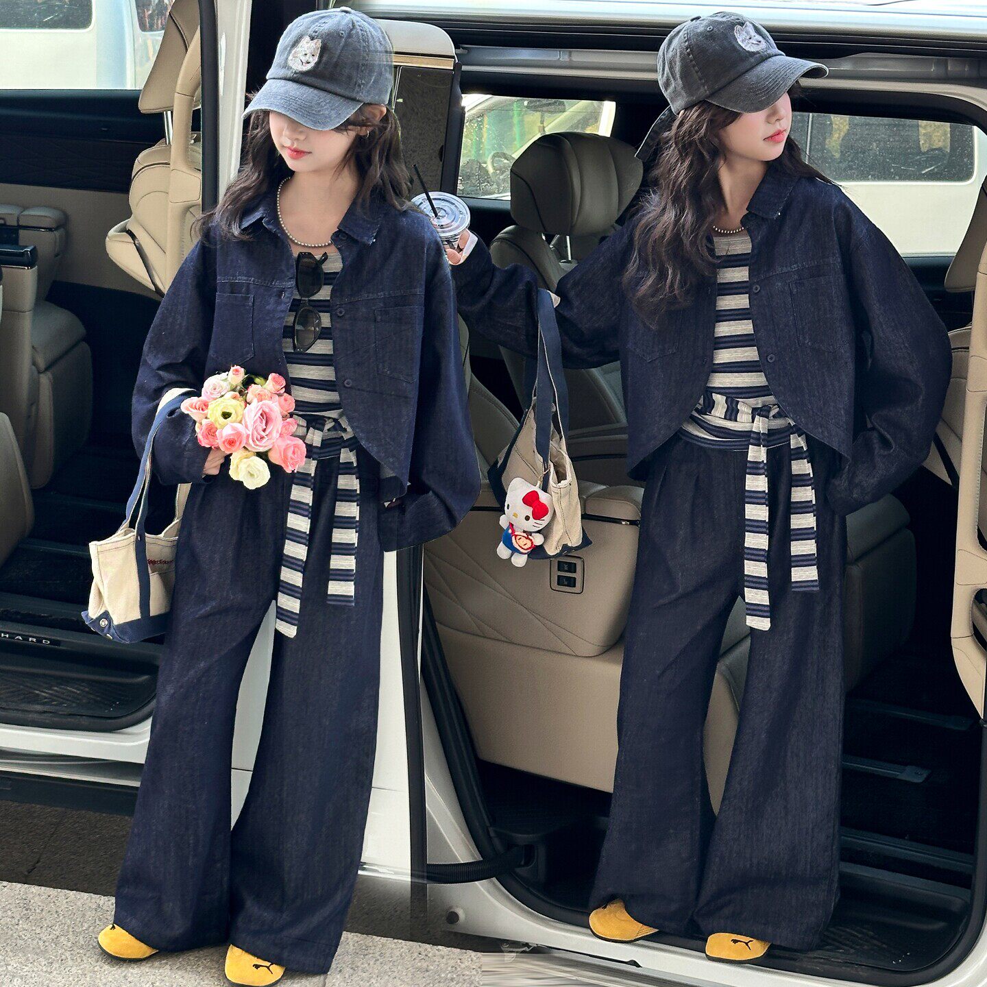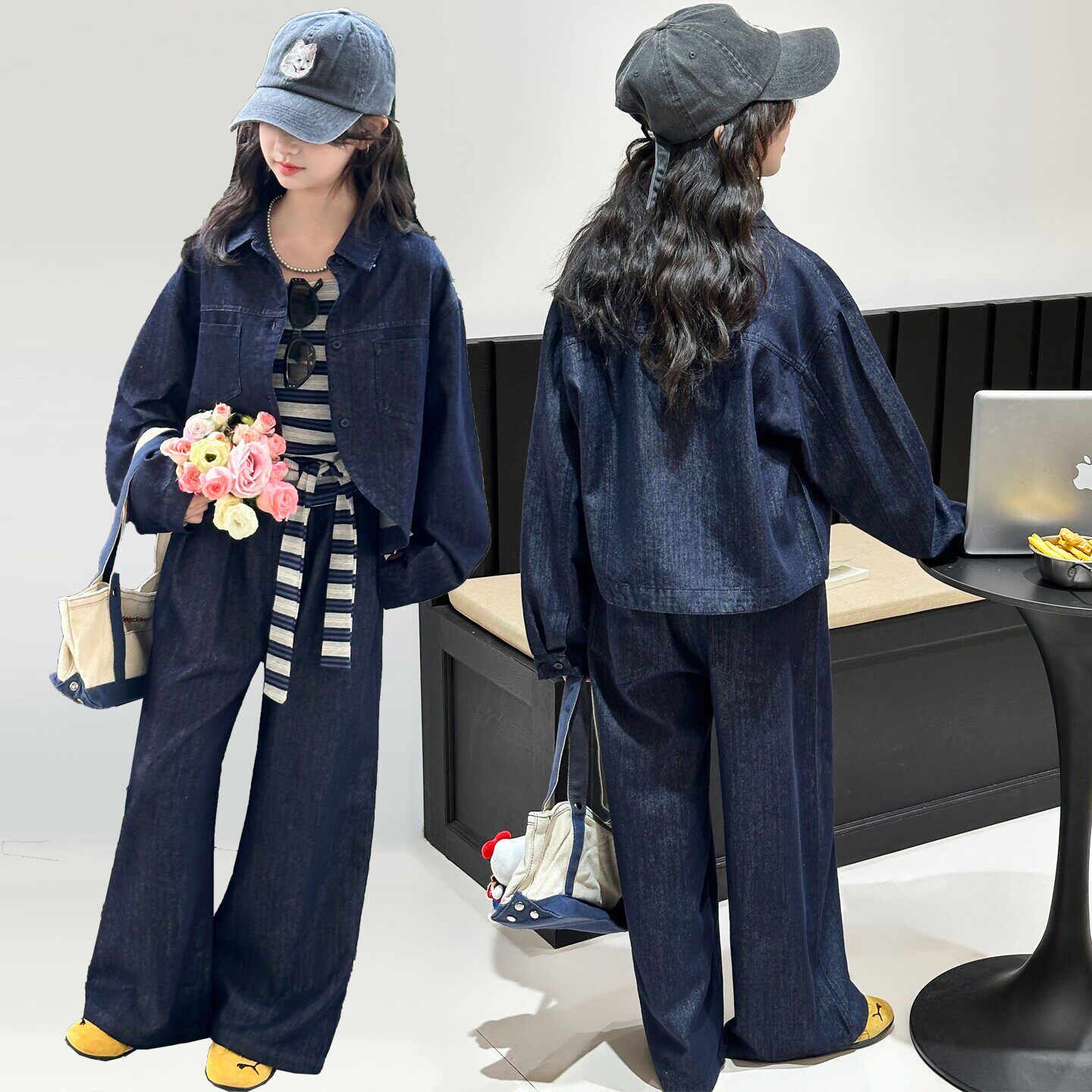 两件套牛仔裤洋气新款韩版外套春装腿2026中大童女童阔春秋潮套装