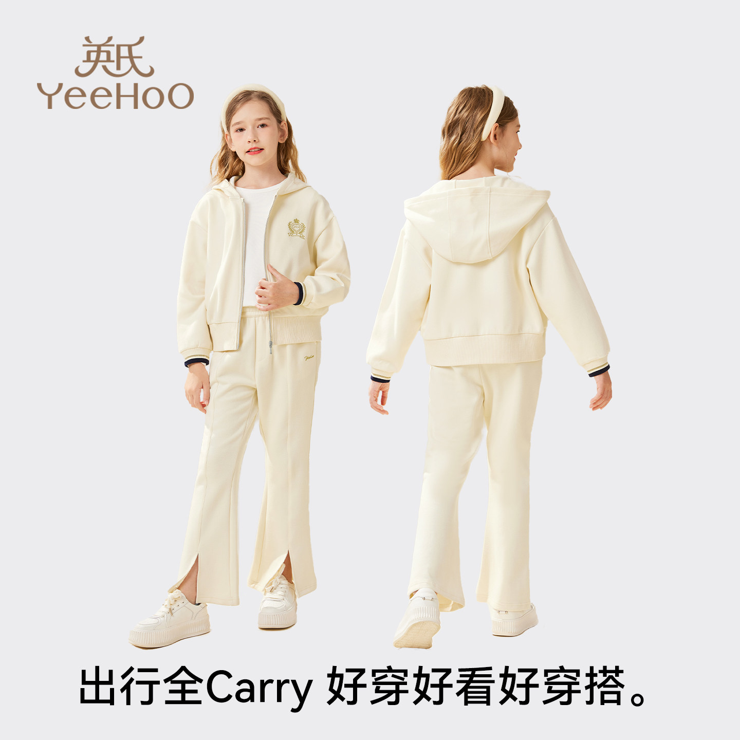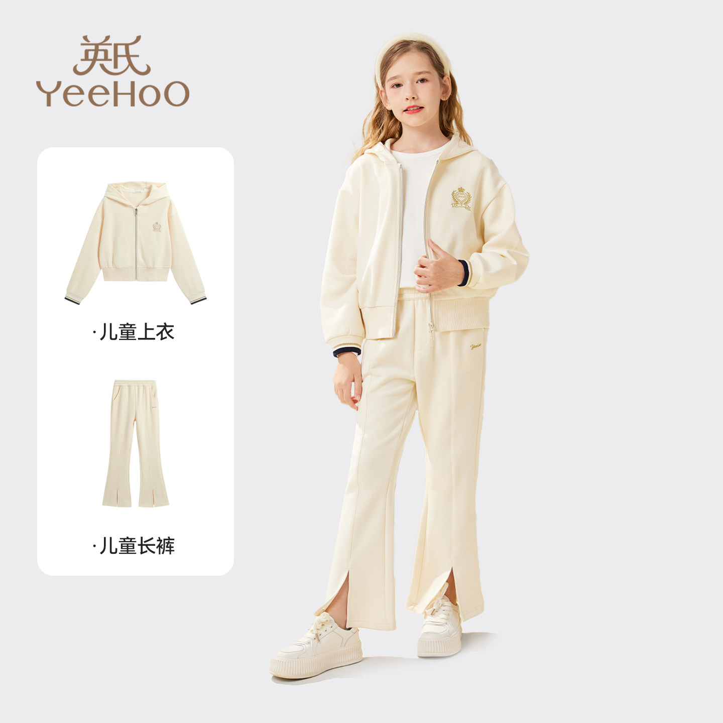 英氏女童套装2026春季新款中大童学院风外套喇叭裤儿童洋气春装潮