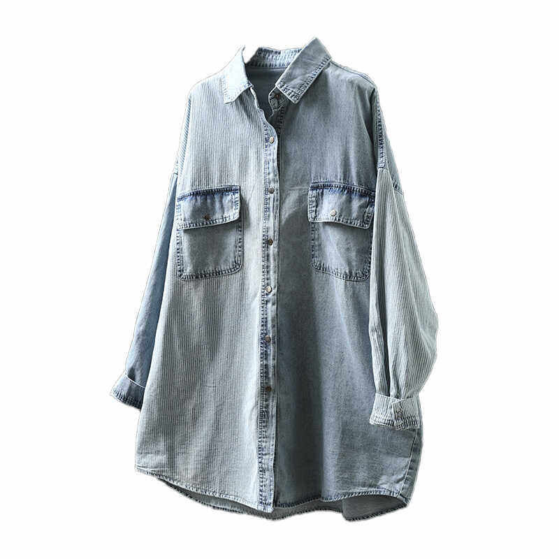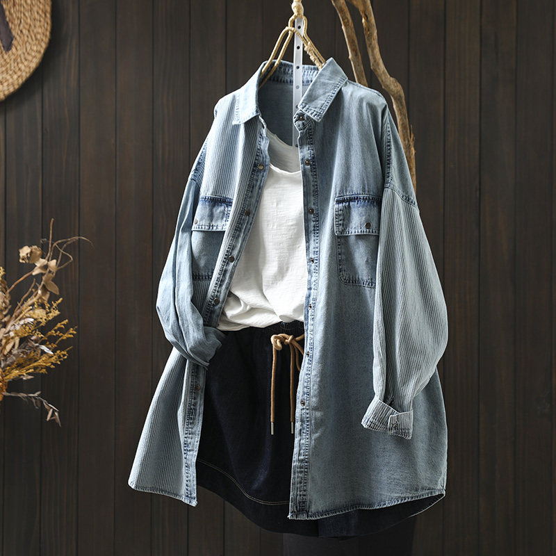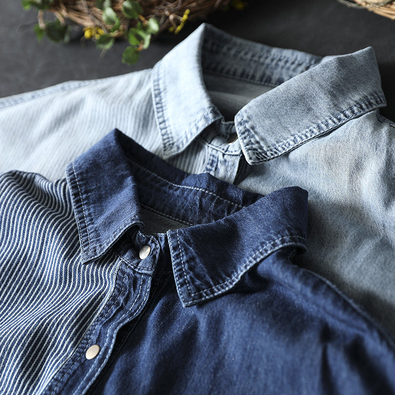 女款2026年新款春装衬衫巨好看洋气独特设计感条纹拼接牛仔上衣